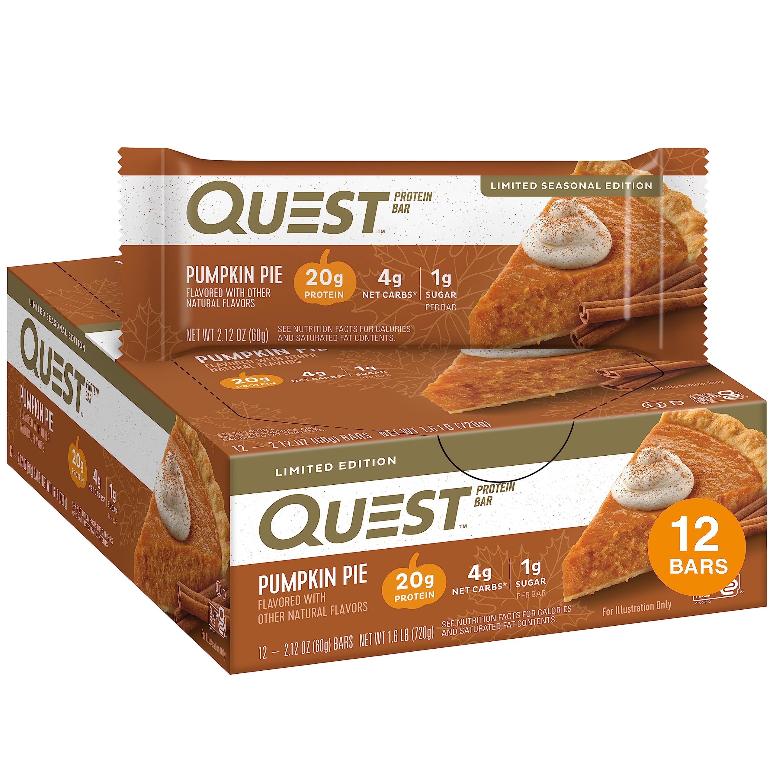 Quest™ Pumpkin Pie Protein Bars have a delicious pumpkin flavor with warm spice notes. Each decadent bar has 20g of protein, 4g net carbs, and 1g of sugar per serving*. Seasonal spices and the delectable taste of pumpkin pie flavor are back. Quest Pumpkin Pie Protein Bars won’t be around for long, so get this great flavor while you can.