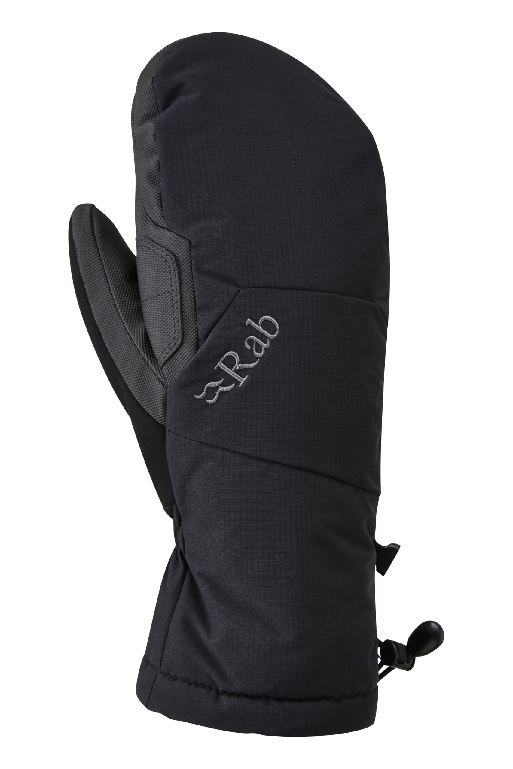 What are the Rab Storm Mitts?Rab's Storm mitts are warm, waterproof and great for all year round cold, wet weather use. Featuring a soft fleece lining and a polyurethane palm, they're both tough and exceptionally comfortable.What are the mitts made of?Fabrics: The storm mitts feature a tough nylon outer fabric to deal with the abuse that the mountains and trails have to offer, while a tough PU textured palm increases abrasion resistance even further when handling rope and tools. Underneath this, you get a completely waterproof Porelle membrane to ensure your hands stay completely dry in the worst conditions. A soft fleece lining increases comfort even further and wicks away sweat when you're working hard.Insulation: Beneath the tough outer layers lies Rab's own Stratus insulation; this insulation is compressible, durable, lofts brilliantly and is warm even when wet. This insulation combined with the waterproof membrane and reinforced palm ensures comfort, warmth and durability for all year round use.What are the features?Aside from the tough shell and warm inner, the Storm mitts pack quite a few little extra features. On the back of the thumb, you'll find a soft patch of fabric to wipe your nose with (really useful in super cold conditions when handling tools), while a single-handed drawcord cuff closure seals out the weather. Lastly, the entire mitt is pre-curved to ensure it follows the relaxed position of your hand.WaterproofInsulated with StratusPre-curvedTextured PU palmCinch lock cuff closureNylon outer fabric