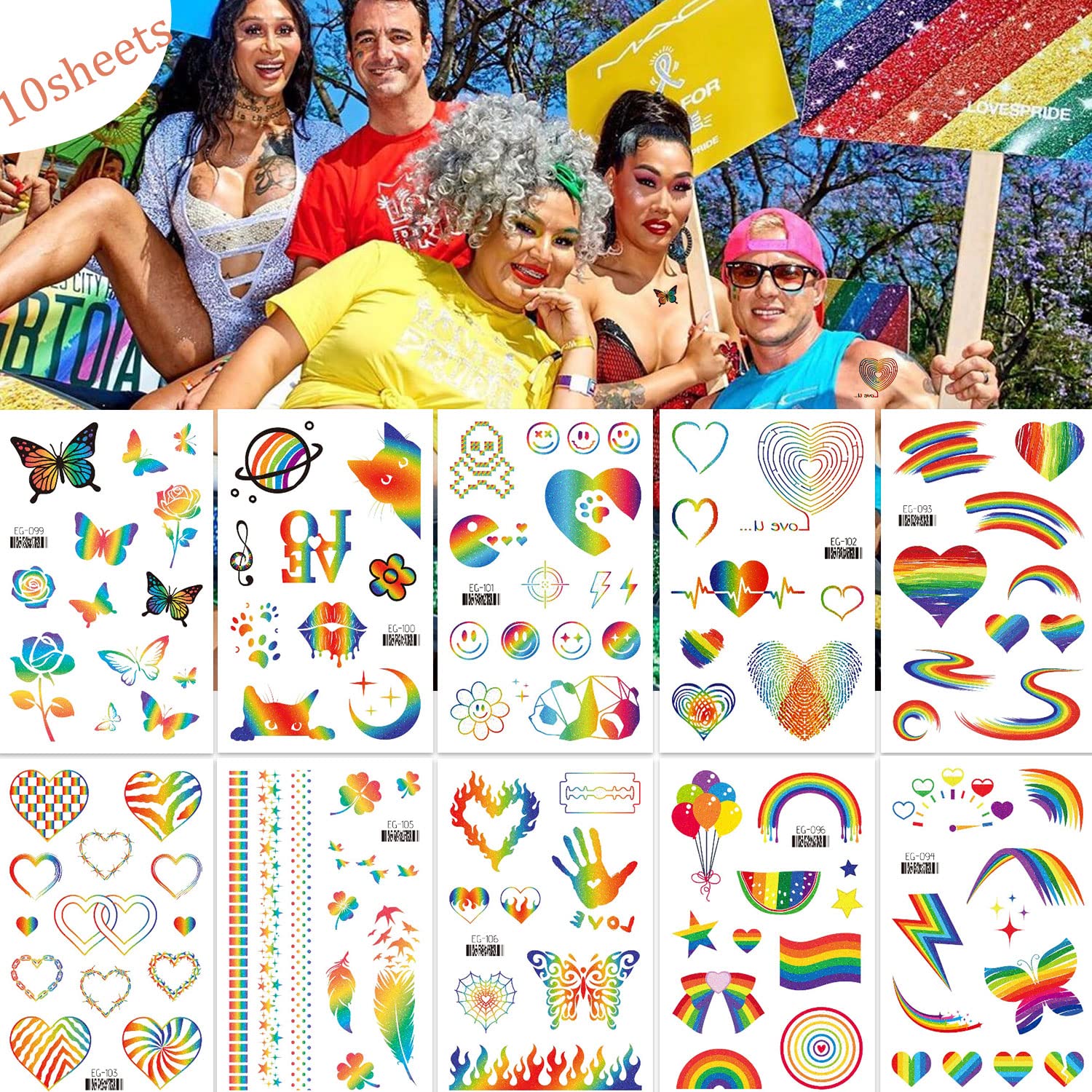 Pride Day Rainbow Tattoo Stickers Pride Rainbow Temporary Tattoos Stickers Waterproof Body Rainbow Pride GayTattoos Art Decoration for Pride Gay