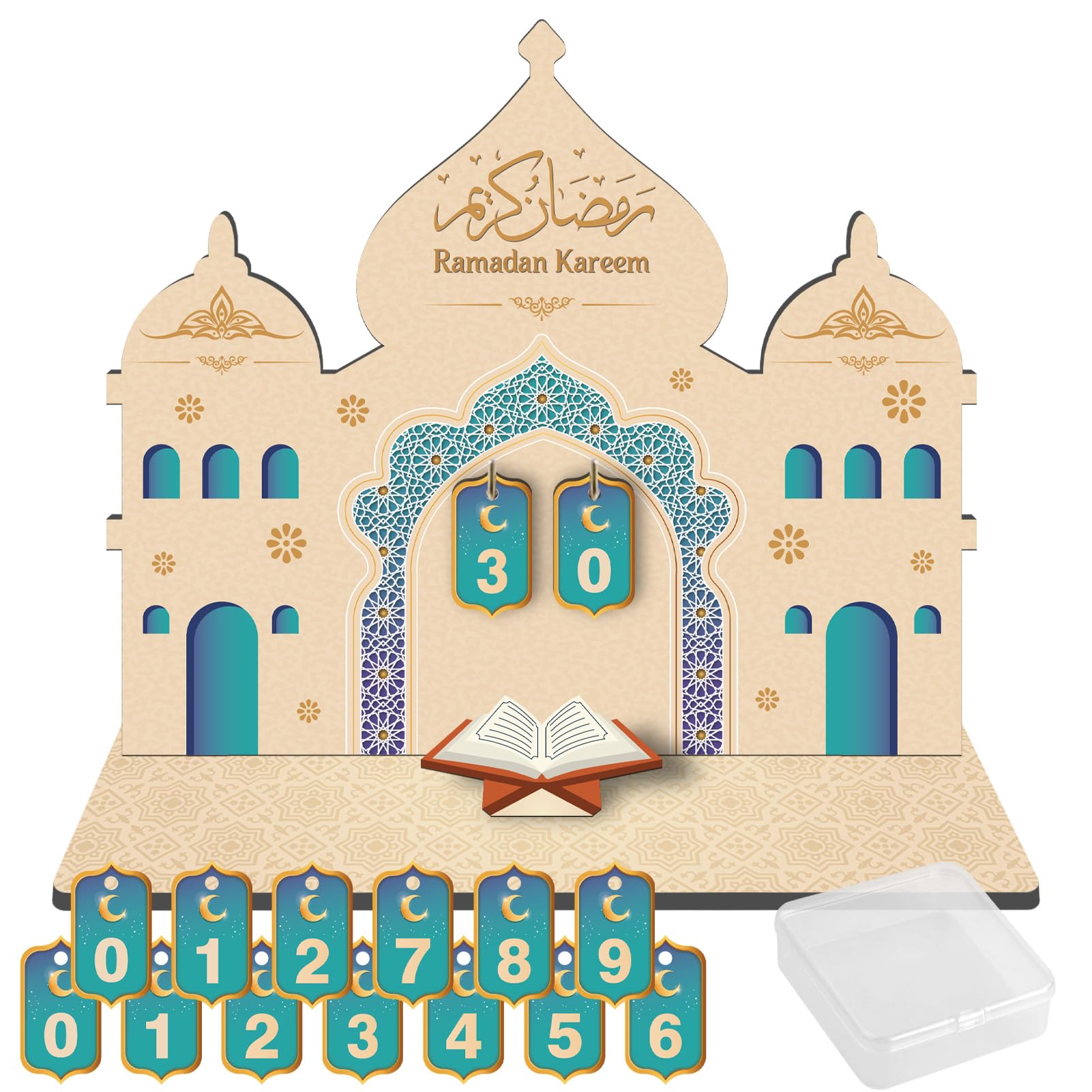 Ramadan Advent Calendar, Ramadan Countdown Calendar for Kids, Wooden Ramadan Calendar Ornaments Decorations for Home, 30 Day Islamic Advent Calendar Ramadan Eid Decorations
