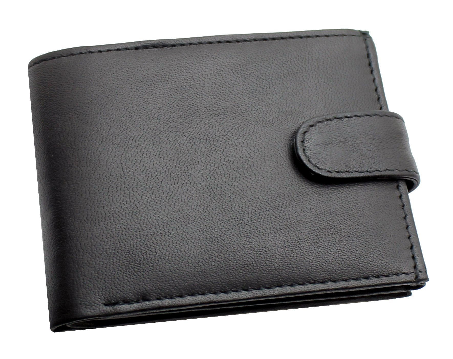 RAS Mens RFID Blocking Genuine Leather Trifold Wallet for Coins Cash and Id 94 Black