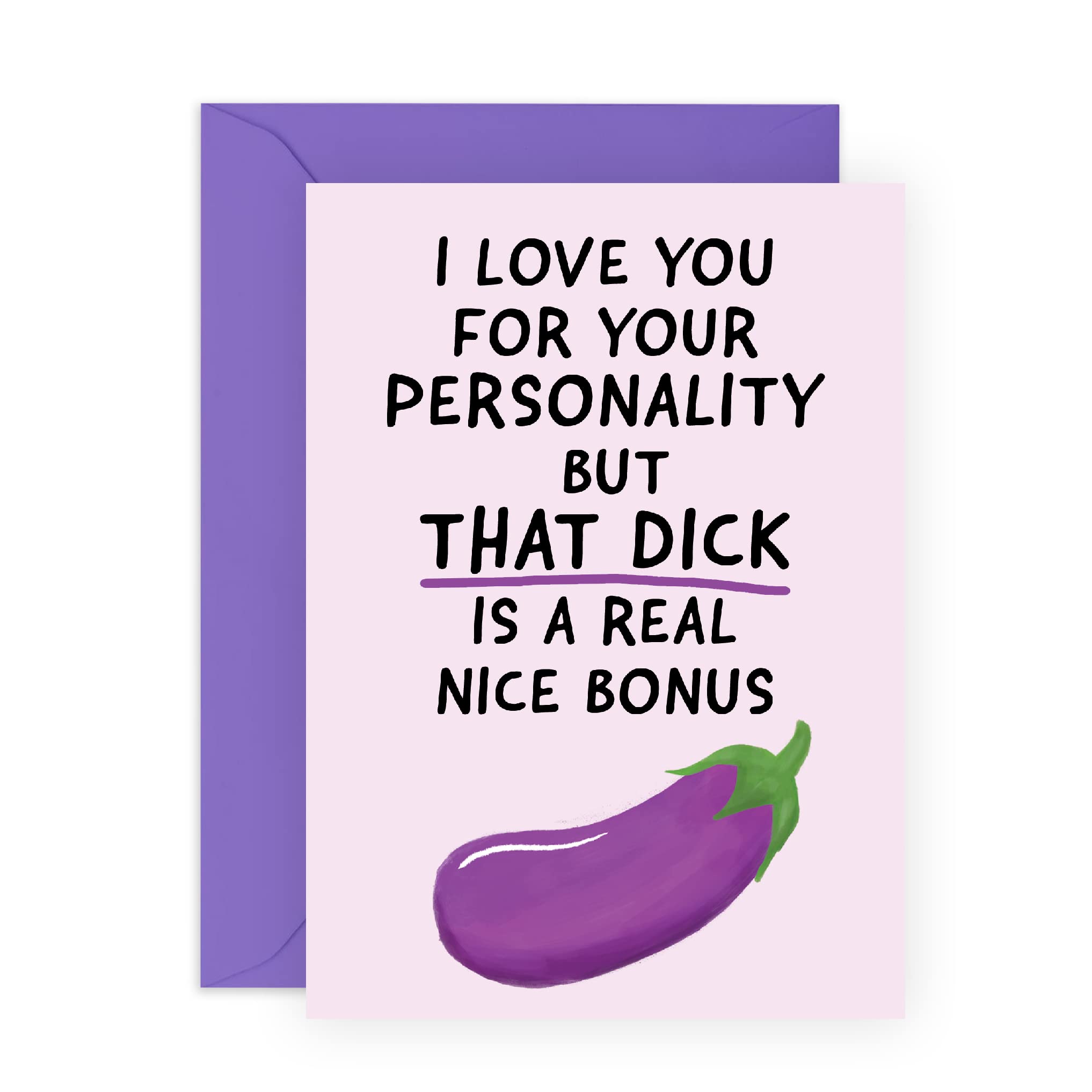 Raunchy Anniversary Card For Husband - Funny Boyfriend Birthday Card - Inappropriate Humour - Eggplant Gifts For Men - Naughty Valentines Card For Partner Fiance Couple - Comes With Fun Stickers