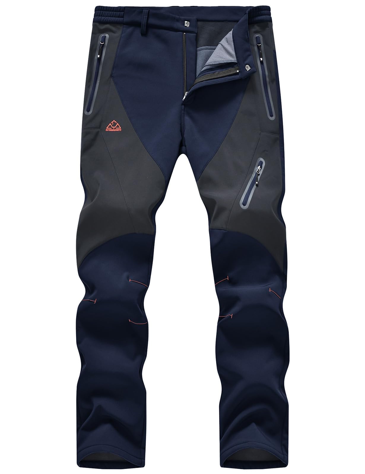 Rdruko Men's Thermal Fleece Trousers winter Warm Waterproof Windproof Outdoor Work Camping Hiking Fishing Skiing Pants Navy Blue 34