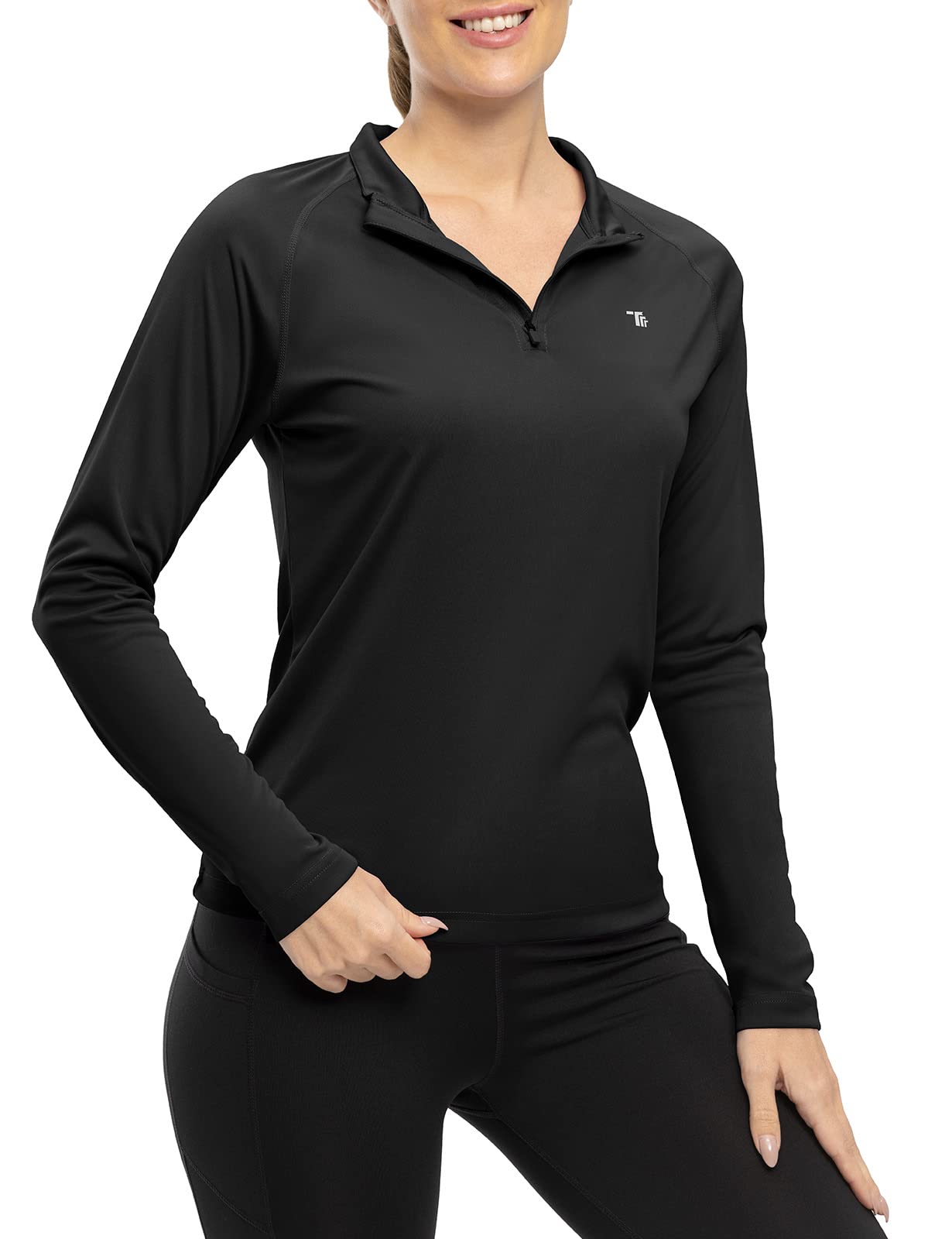 Rdruko Women's Hiking Shirts Quick Dry Lightweight Long Sleeve SPF 50+ UV Protection Athletic Shirts(Black, US XXL)