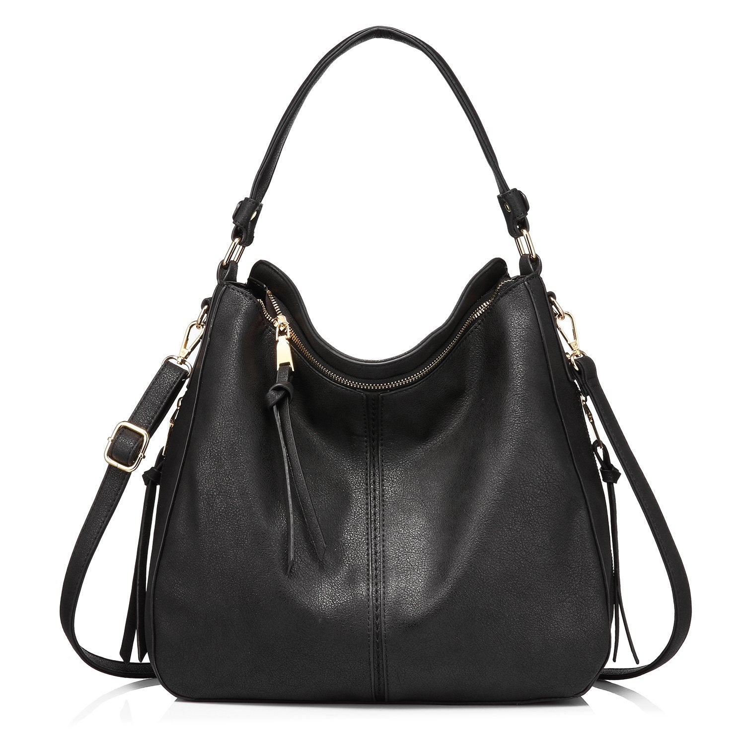 Realer Women Handbags Fashion Hobo Bags Faux Leather Long Strap Shoulder Bag Ladies Large Tote Bag Cross body Bag for Work Business School College Travel Black