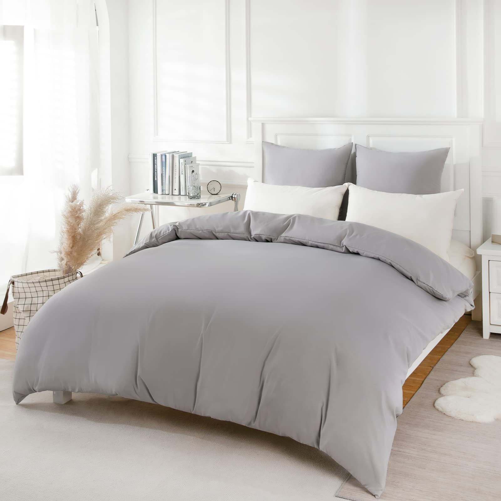 REDKEY Bed Linen 240 x 220 cm 3-Piece Light Grey - Duvet Covers 240 x 220 cm with 80 x 80 cm Pillowcases Microfibre Bedding Sets 240 x 220 cm Bed Linen Set with Zip Summer