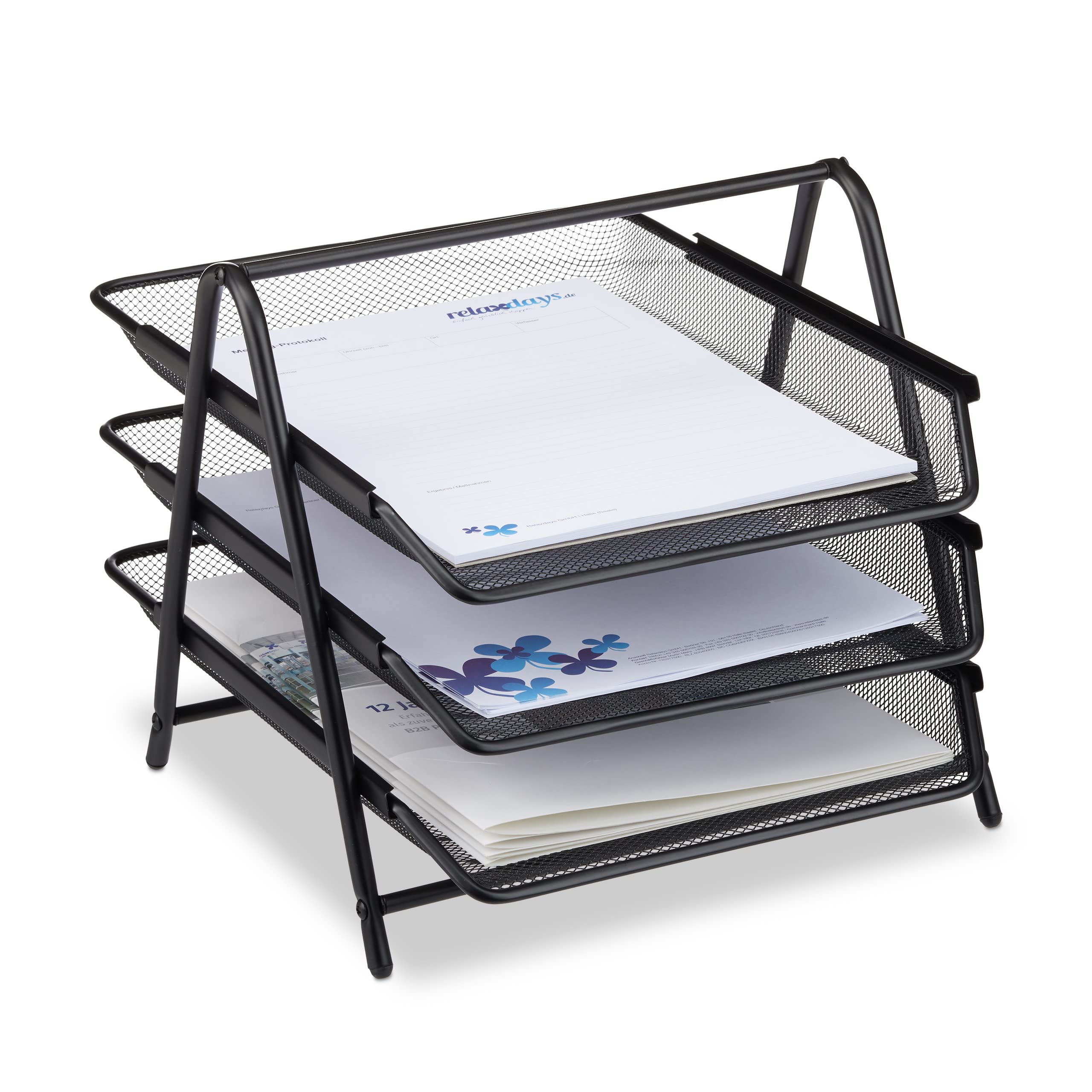 Relaxdays Document Holder, Metal Black, 35.5 x 29.5 x 27 cm