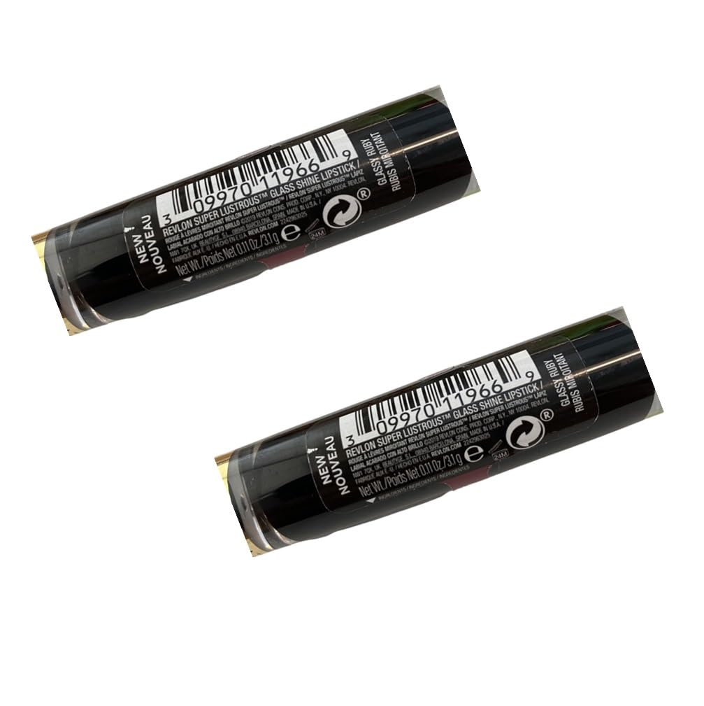 REVLON Pack of 2 Super Lustrous Glass Shine Lipstick, Glassy Ruby 025