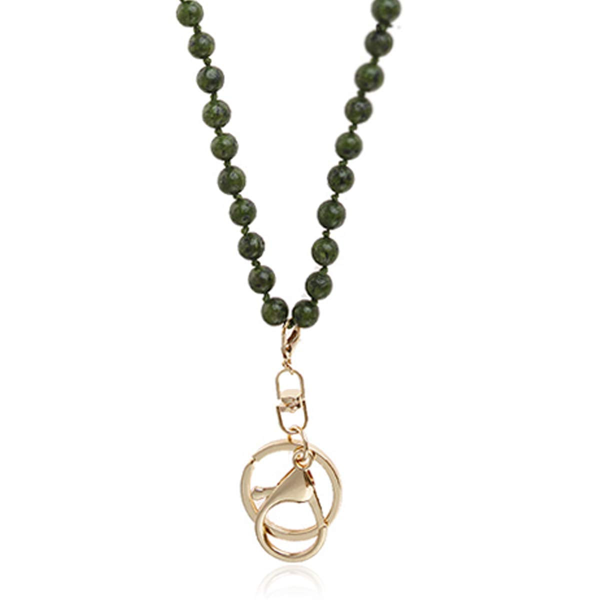 RIAH FASHION ID Card Badge Lanyard - Key Chain Holder Hook Buckle Long Necklace Crystal Bead Strand, Faux Suede, Sparkly Rhinestone (Natural Stone - Gray)