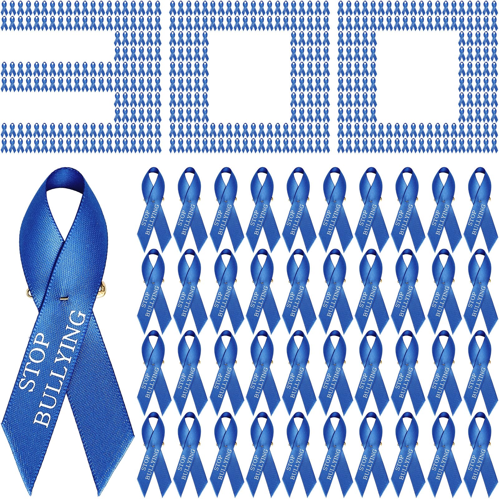 Riceshoot 300 Pcs Anti Bullying Awareness Ribbons Bulk Blue Awareness Lapel Ribbon Pins Anti Bullying Ribbon with Safety Pins Awareness Brooch Products for Public Charity Campaign Fundraiser Supplies