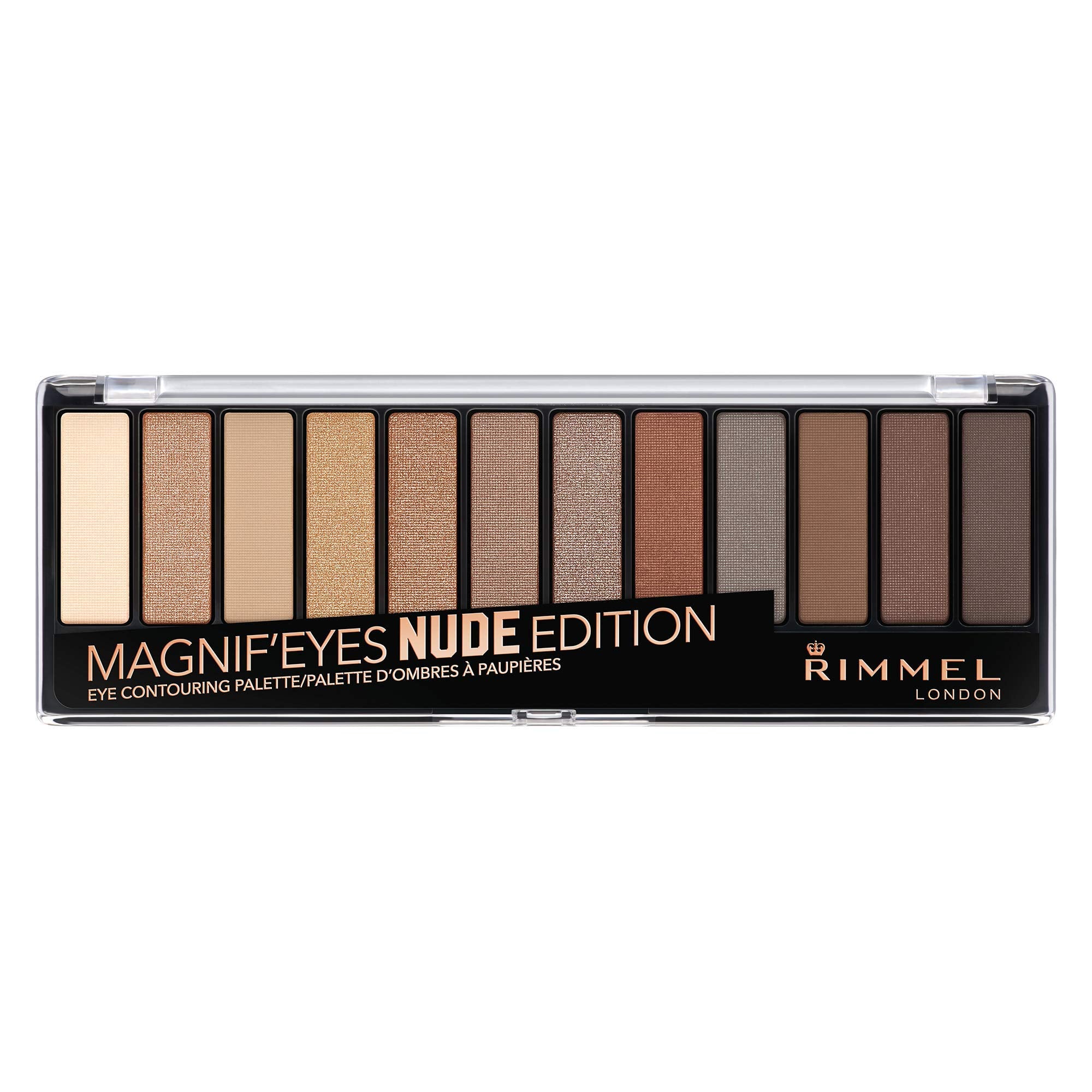 All eyes on you! The Magnif'Eyes eyeshadow palette Reloaded Edition is a 12-shade all-in-one eyeshadow, liner, and highlighter palette. With a high-shimmer eyeshadow formula, it's easy to create endless combinations of looks with one blendable palette! Choose a light shade to highlight or apply as a base over the entire lid. Choose a medium shade to deepen the outer corner. Choose a dark shade to contour the crease of the lid and blend. Apply a dark shade wet for a precise line along the lash line. The Magnif'Eyes eyeshadow palette is the perfect on-the-go product. Create striking or subtle eye looks effortlessly. Live the London look!