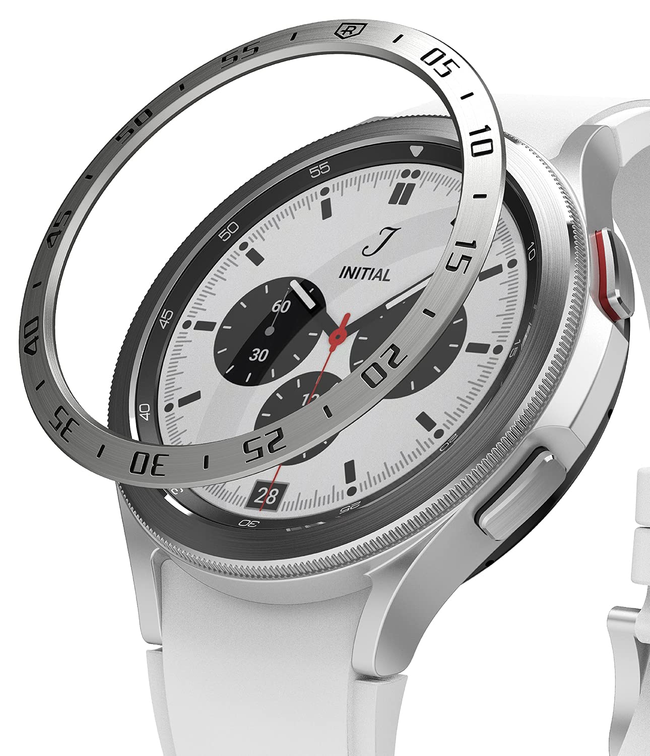 Ringke Bezel Styling Compatible with Samsung Galaxy Watch 4 Classic 46mm Adhesive Frame Ring Cover Anti Scratch [Stainless Steel] Protection for Galaxy Watch4 Classic 46mm - Silver [46-01]