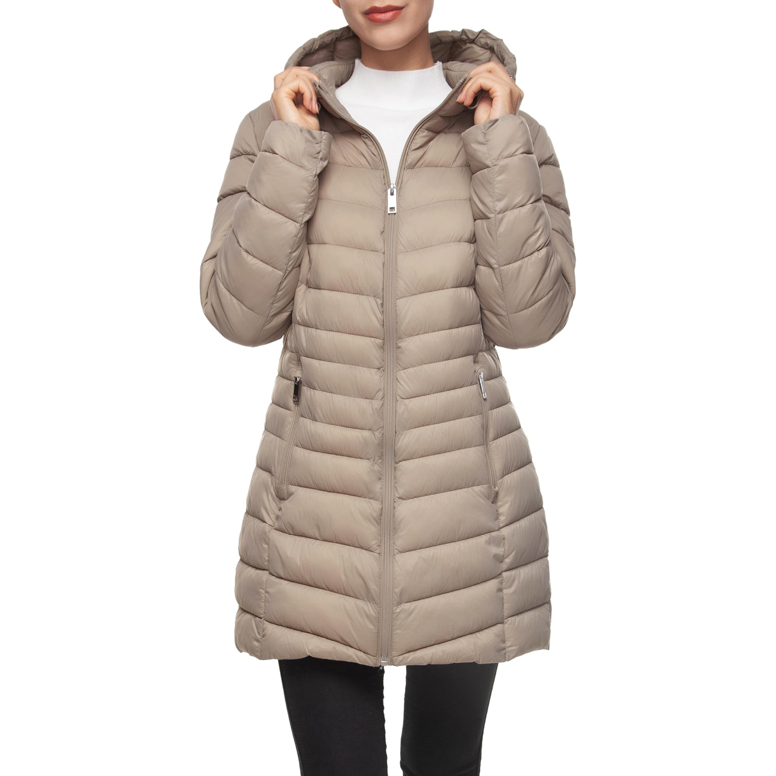 This Rokka&Rolla Women’s Long Puffer Jacket is a mid-length coat which is great for casual, everyday wear. This Women’s Maxi Coat is packable and can be folded into a portable, travel-sized pouch. Lightweight and water-resistant with a coated DWR finish to allow you to stay dry and comfortable at all times when partaking in outdoor recreational activities. Hooded Winter Jacket that is heat insulated to keep you feeling warm and cozy. Padded outer-shell fabric that is thick and will block the oncoming wind and still remain durable after wear and tear.