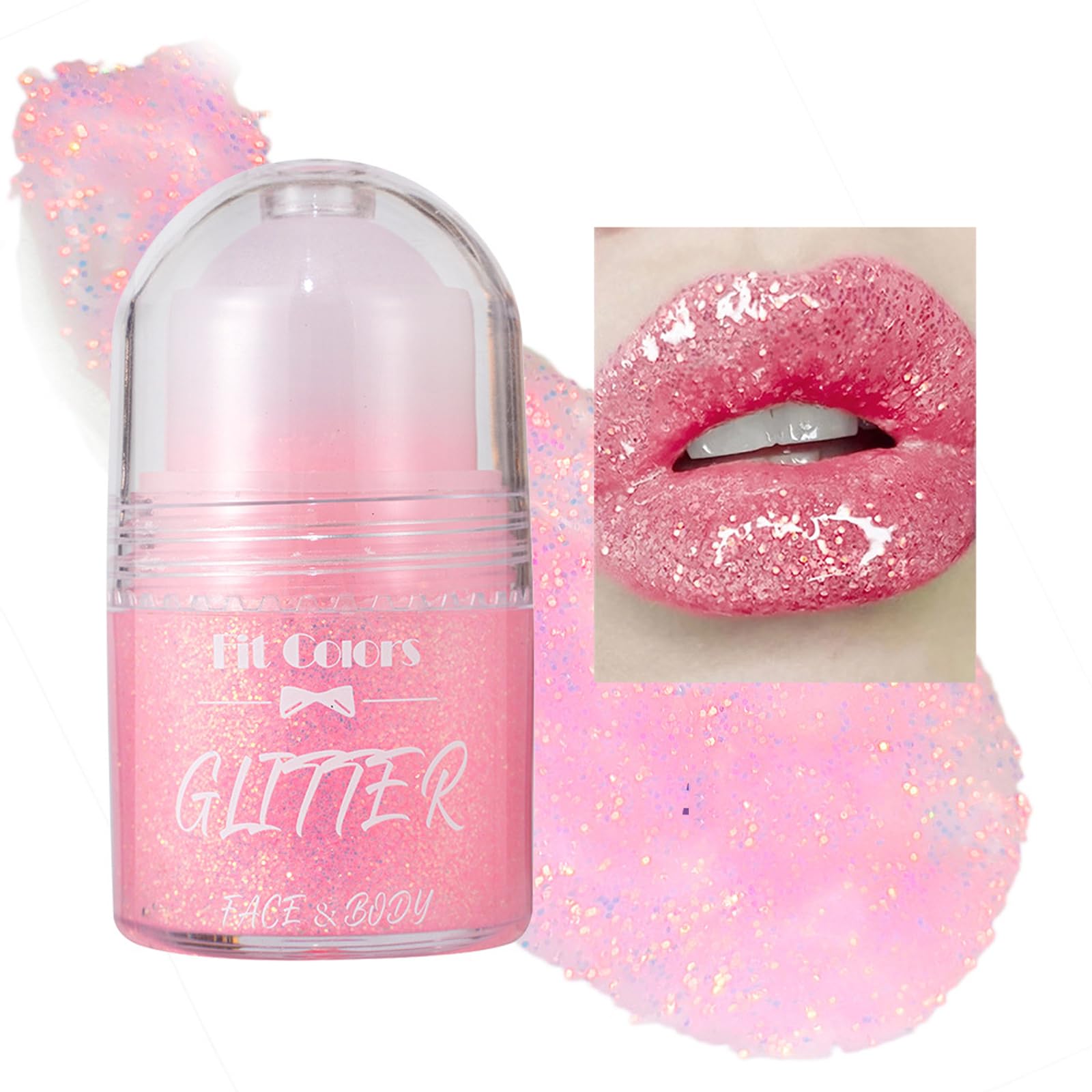 Roll-on Holographic Body Glitter Gel for Body Face Hair, Mermaid Makeup Festival Rave Accessories, Holographic Hair Glitter Gel, Festival Party Body Shimmer Glitter Makeup (Pink)