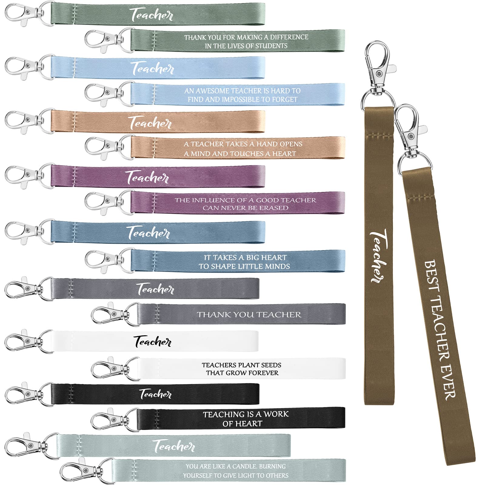 Roowest 50 Pcs Teacher Appreciation Gifts Keychain in Bulk Inspirational Wrist Keychain Motivational Teacher Key Lanyard Gifts for Teachers Women Men Team Christmas Gifts for Employees, 10 Styles