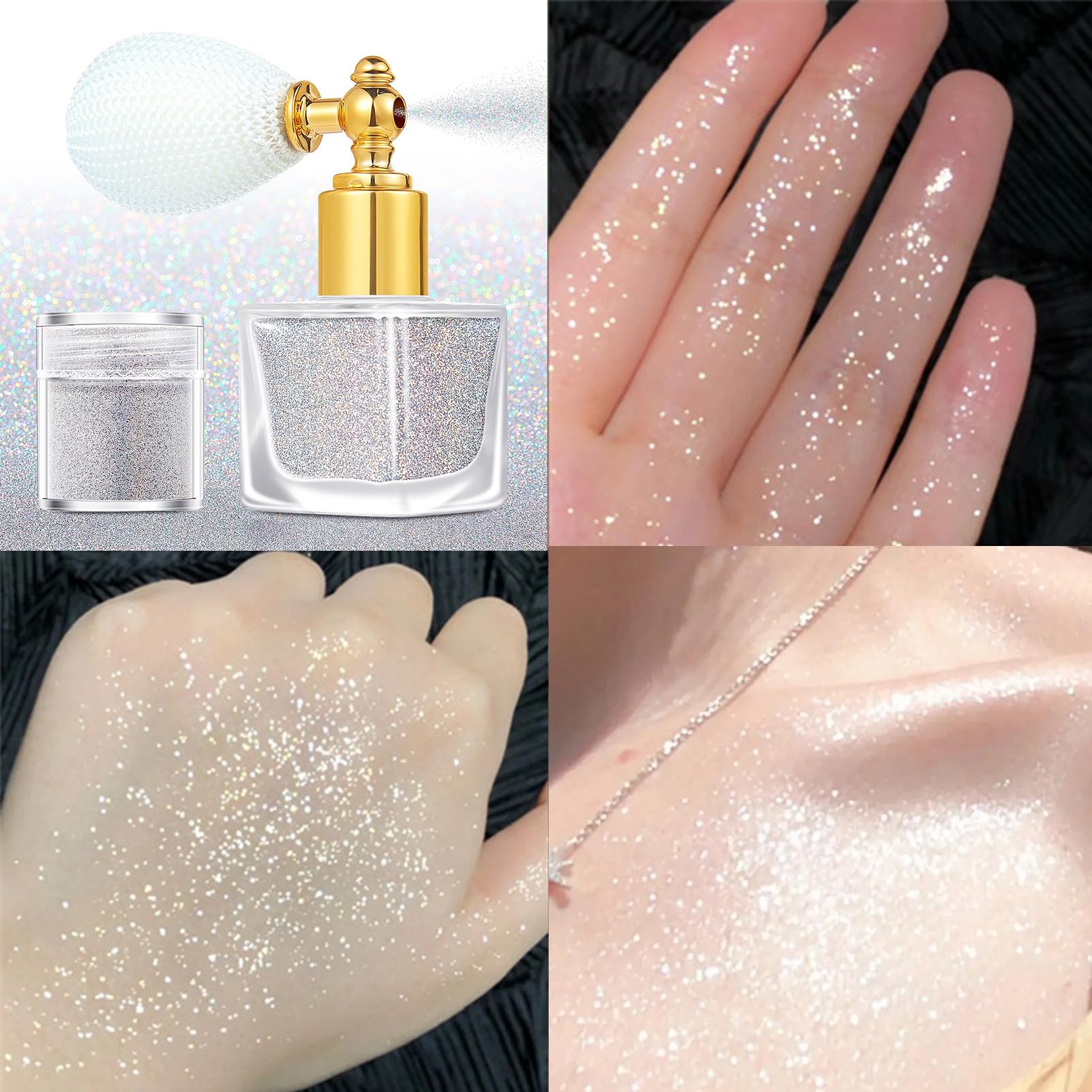 Body Glitter Spray, Glitter Spray for Hair and Body, Glitter Spray for Fabric, Body Shimmer for Women,Easy to Clean Shimmer Spray, Silver Glitter Spray Paint Multi-Functional Shimmer Powder Versatile pink rave accessories could be used not just for hair, body, clothes, but also nice makeup glitter for eye as pink glitter eyeshadow or for lips to add shimmer to it. Long Lasting Silver Hair Spray The shimmer body spray would make your hair or body sparkle for up to 12 hours. Easy to Clean Our body powder spray would be smooth, fine, shiny, not sticky or greasy and fresh at the same time. A body highlighter that’s easy to remove with daily clean steps. Widely Used A great body, fabric, hair and face shimmer for all ages , all occasions and all skins. Ideal Gift This body glow shimmer is perfect for women, girls, lady at her birthday, Valentine's day, Thanks giving, Christmas day, Mother's day or other special day as a nice gift. ??Recommended Way to Use: Fully shake the powder spray ; Squeeze the air bag and spray glitter powder evenly; Repeat the steps above if more sparkly needed. Package Including:/b> 1*Silver Glitter Body Spray & Refill