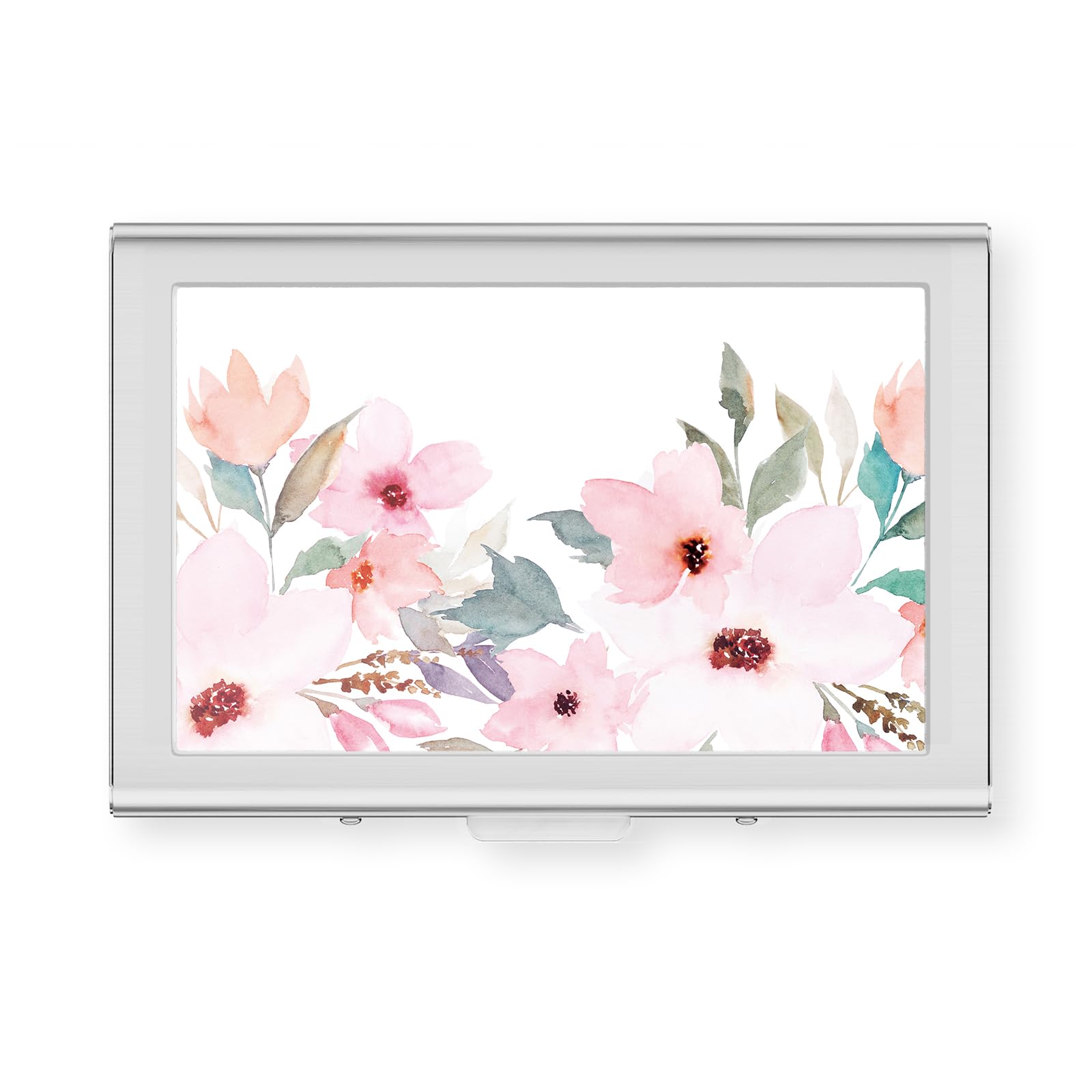 Rouidr Credit Card Holder, Small Credit Card Wallet, Slim RFID Metal Card Holder Wallet, Business Card Case ID Case for Women Men(Pink Flowers)