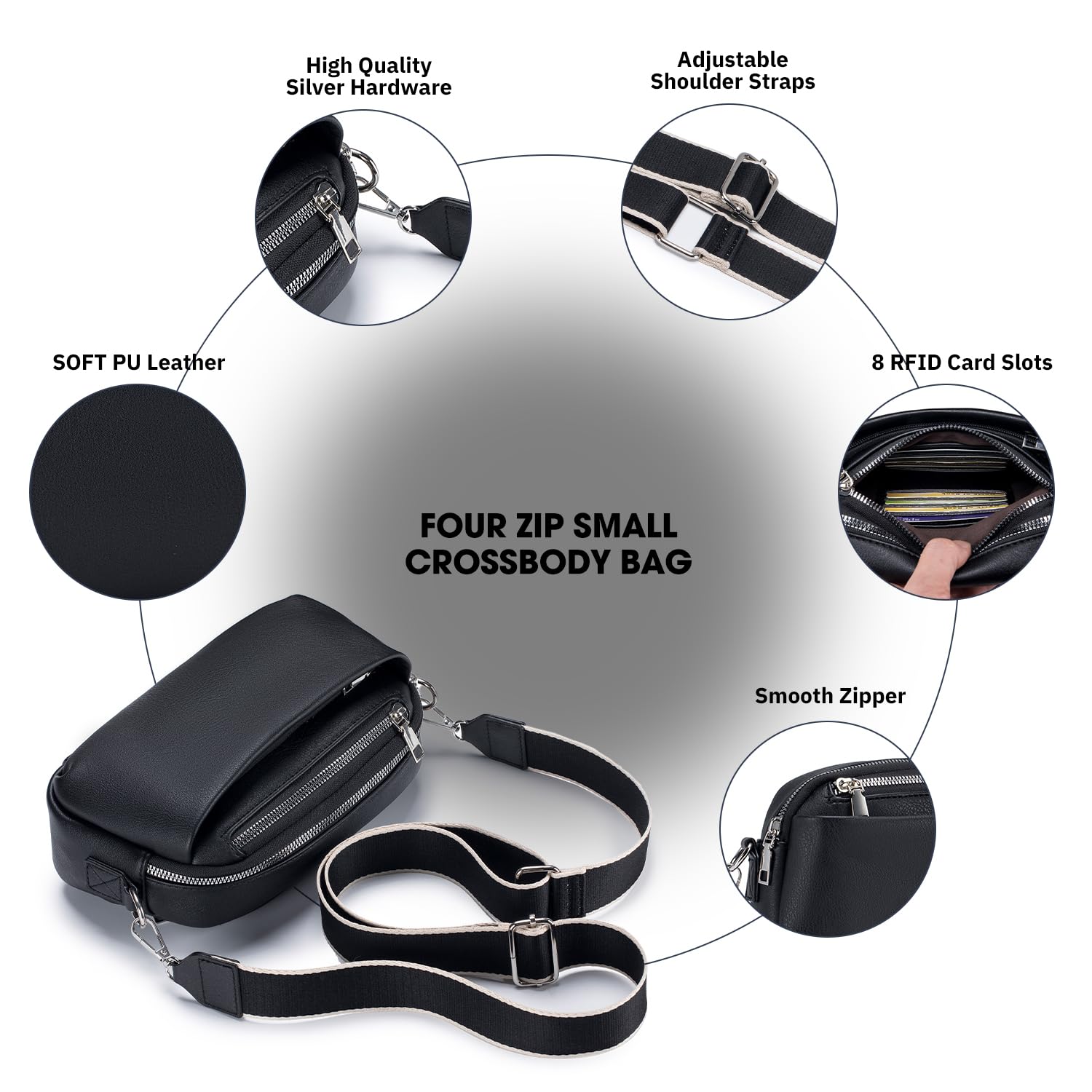 Roulens Cross Body Bag, Shoulder Bag with Adjustable Wide Strap Shoulder,Large capacity bag, multi-pocket bag,Vegan LeatherMobile Phone Bag,Multifunctional Bag