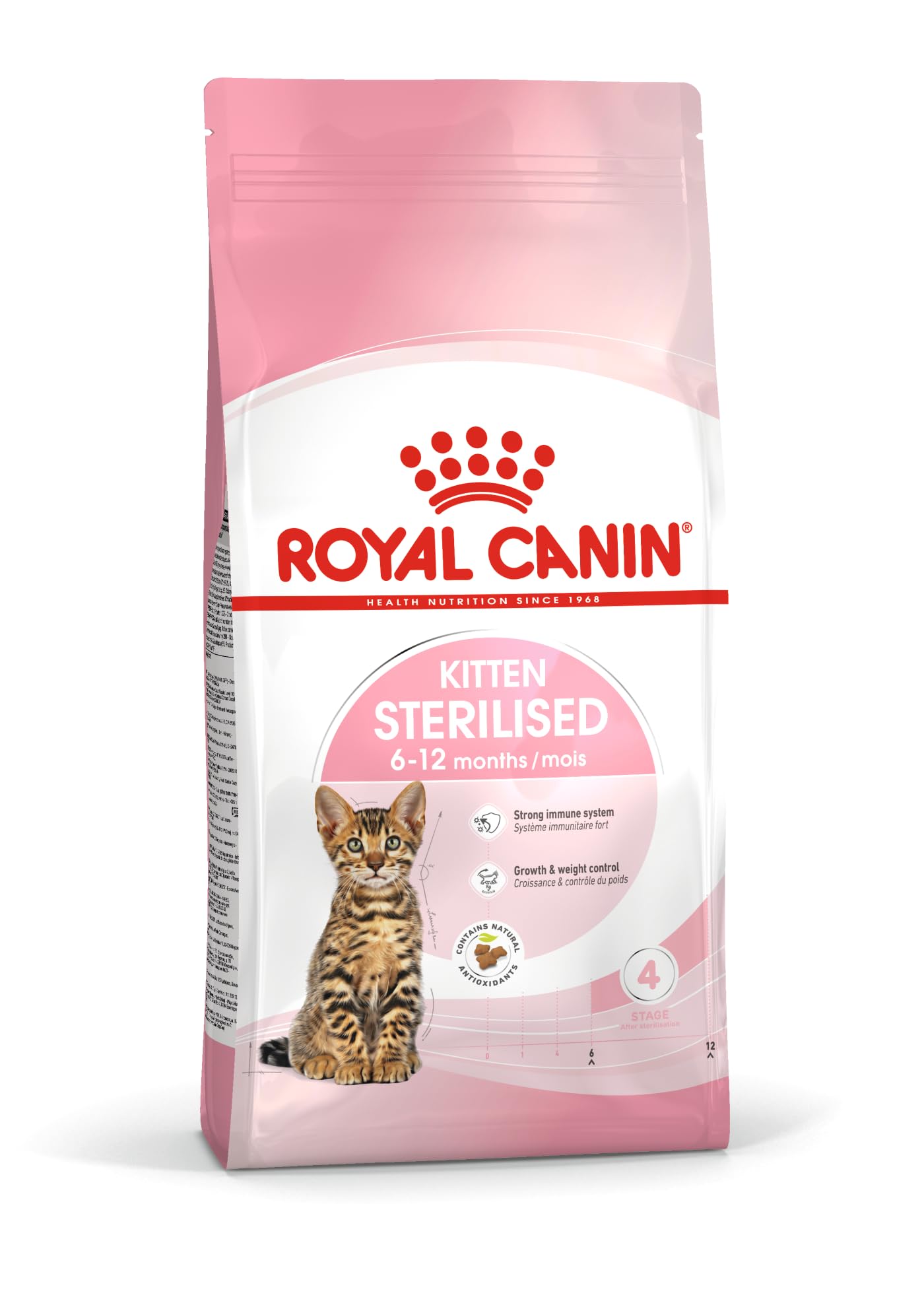 DescriptionProduct DescriptionKitten Sterlised helps limit the risk of excess weight gain thanks to an adapted content of fat and provides a balanced intake of nutrients (protein, calcium, phosphorus) for a harmonious end of growth.Box ContainsEach order comes with 1 x Royal Canin Kitten Sterilised Dry Cat food 2kg