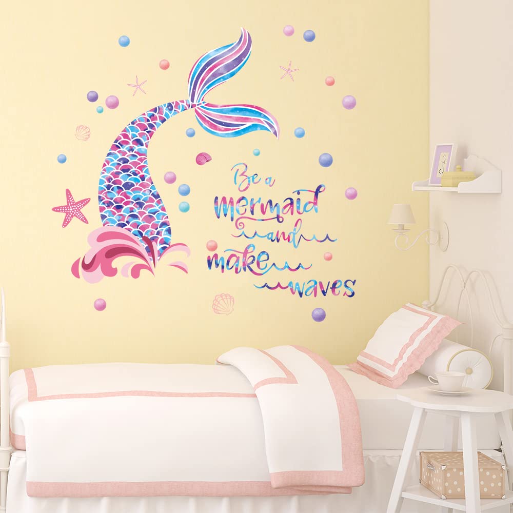 Runtoo Mermaid Wall Stickers for Girls Bedroom Kids Inspirational Quotes Wall Decals Bathroom Baby Nursery Wall Decor