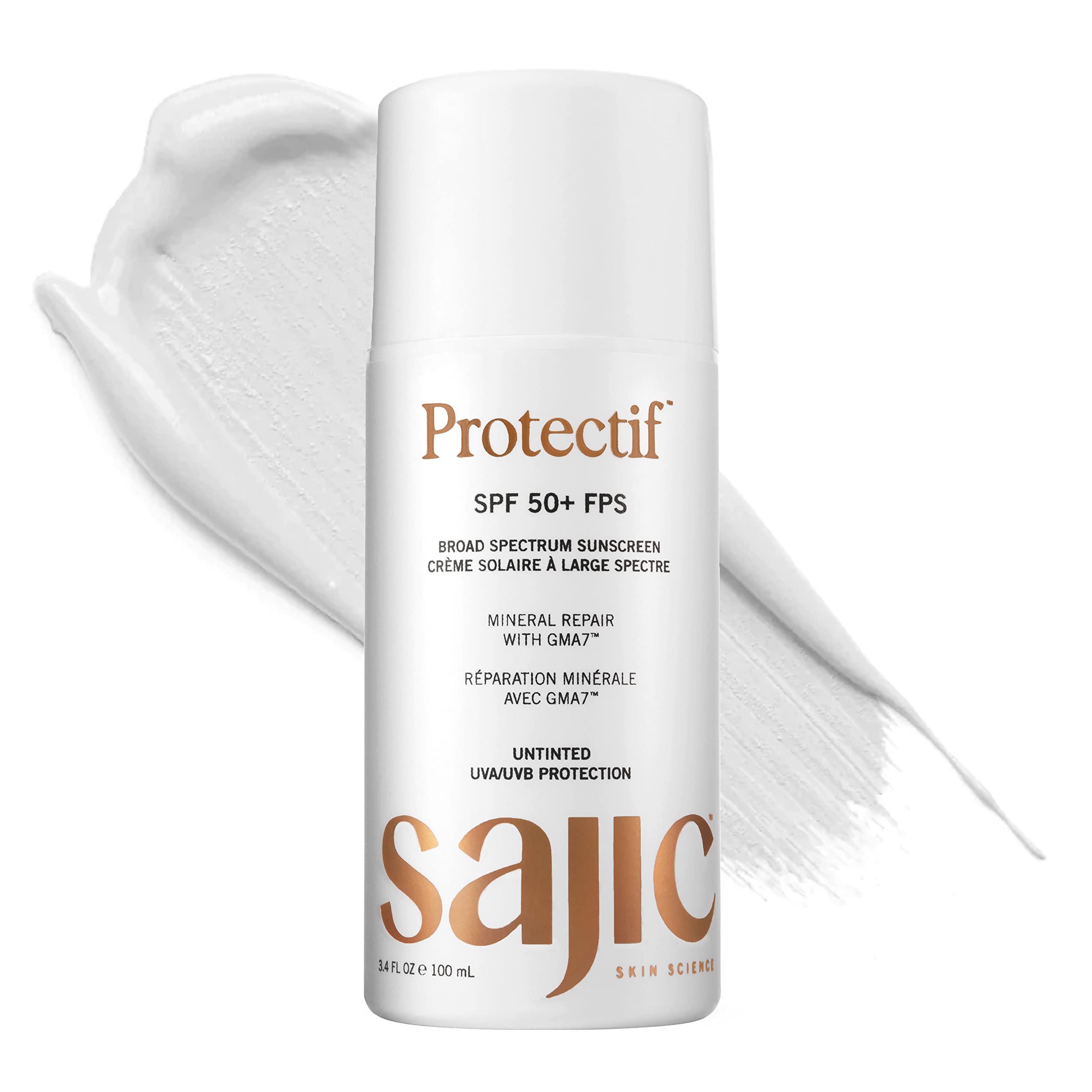 Introducing PROTECTIF MINERAL REPAIR SUNSCREEN POWERED BY GMA7 SPF 50+. Crafted with excellence and sustainable ingredients, this mineral sunscreen caters to various skin types and concerns, including dry, normal, combination, sensitive (post-laser and rosacea), and hyper-pigmented skin. Experience unparalleled benefits without the chalky residue common in mineral sunscreens. Our SPF 50+ mineral filter offers complete UVA/UVB protection while repairing actinic and sun damage. Its moisturizing, hydrating effect absorbs quickly, leaving a matte finish perfect for active individuals. Our peptide formulation nourishes, tightens, and minimizes fine lines, stimulating endogenous DNA repair mechanisms. Iron Oxide provides defense against pollution and blue light damage. The Color Matching Technology adapts seamlessly to your skin tone, leaving no residual film and making it BIPOC-friendly. Sweat and oil control, glycerine for moisture, and safety for post-procedure use make this sunscreen a versatile choice. It's low in allergenicity and cruelty-free, ensuring gentle care for your skin and animals. This expert formulation features five premium ingredients: Zinc Oxide, Titanium Dioxide, Hidrox, Coffee Seed, and Green Tea. It's designed for multi-targeted protection, skin microbiome balancing, and GMA7 micro-delivery to penetrate the dermis. Timed nutrient release ensures optimal effects. Safeguard your skin daily with the power of natural minerals-Zinc Oxide and Titanium Dioxide forming a protective shield. Extracts of Olive, Coffee Seed, and Green Tea beautify your skin and help prevent UV damage. Our fragrance-free, non-greasy formula provides a makeup-friendly matte finish.