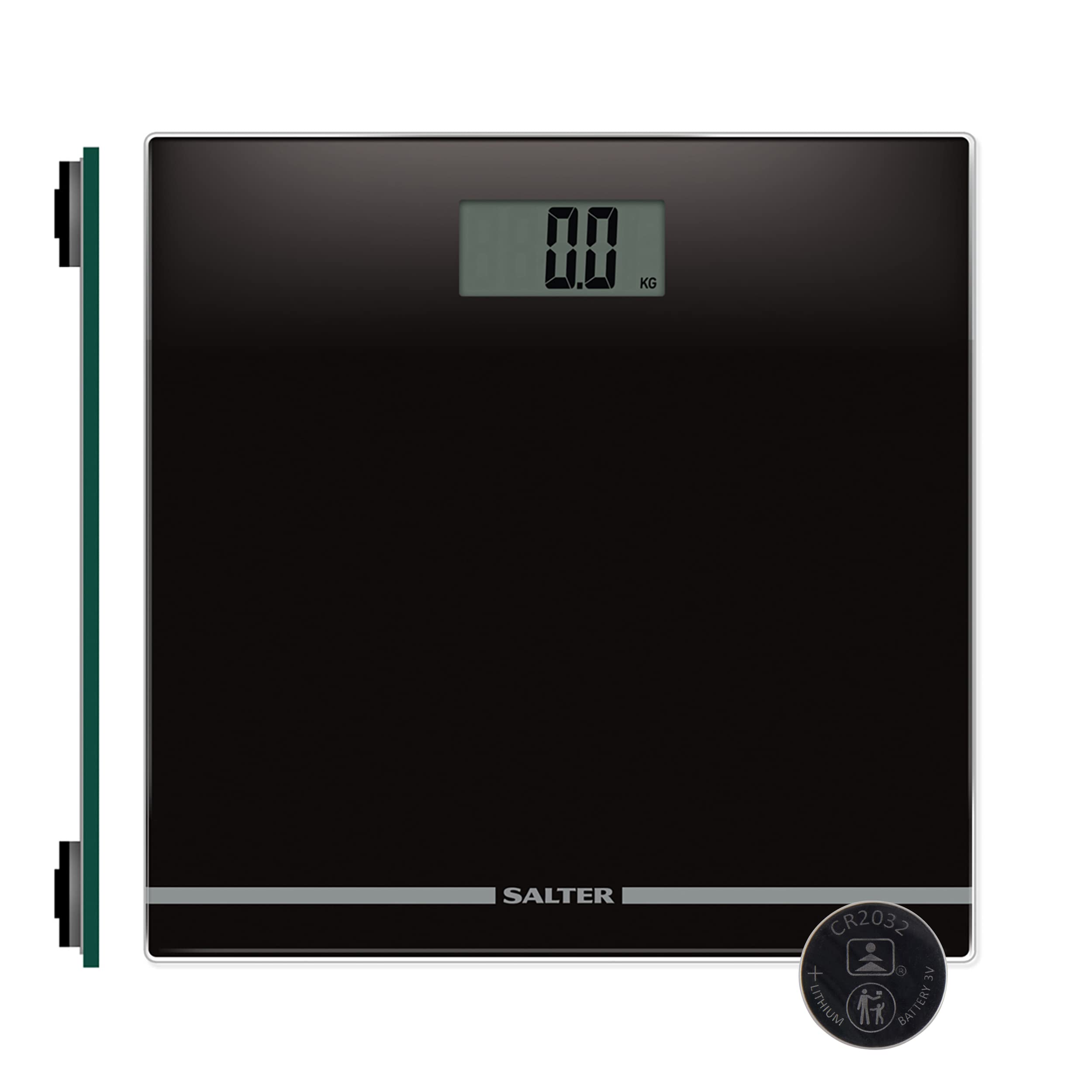 Product DescriptionPractical and stylish, this Glass Electronic Scale from Salter is perfect for all bathrooms. Simply step on the scale, there’s no need to tap any buttons, and receive your instant weight reading. The modern scale features a large toughened glass platform for increased reliability and accuracy but also look stylish and compliment your bathroom. Your personal weight reading will appear on the large easy to read LCD display where you can alter to kilograms or stone to suit your preference. If the battery compartment does not close securely, stop using the product and keep it away from children. If you think batteries have been swallowed or placed inside any part of the body, seek immediate medical attention.Box Contains1 x Glass Electronic Scale, 1 x CR2032 Battery