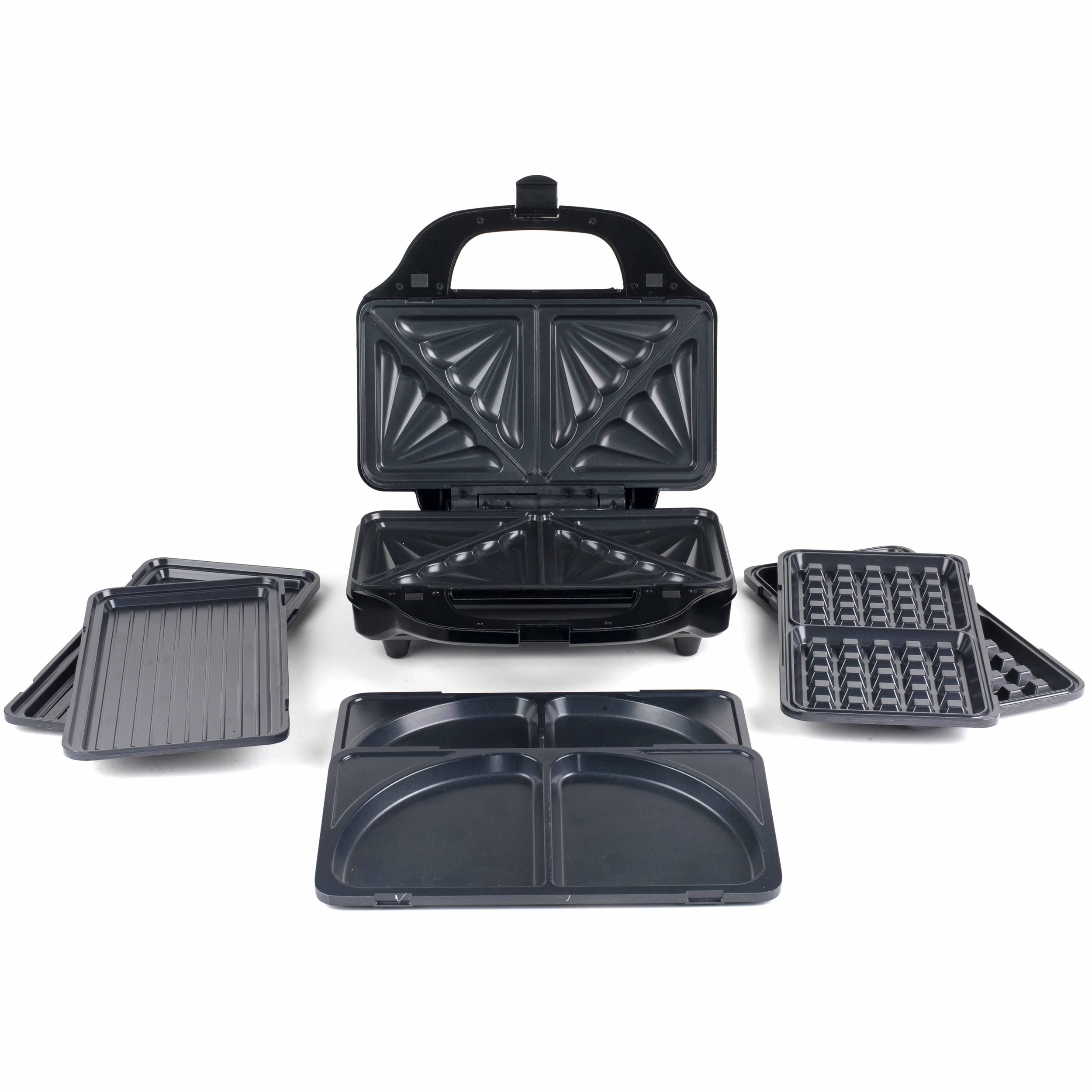 Make delicious waffles, toasted sandwiches, omelettes and paninis at home with this 900 W Salter Snack maker with extra-large cooking plates for deeper filled snacks. The ready indicator light and cool touch handles make it super easy and safe to use. With four sets of removable non-stick cooking plates which are easily interchangeable, you can quickly switch between modes to make a whole host of tasty treats. This superb multifunctional snack maker is an ideal addition to any family home.