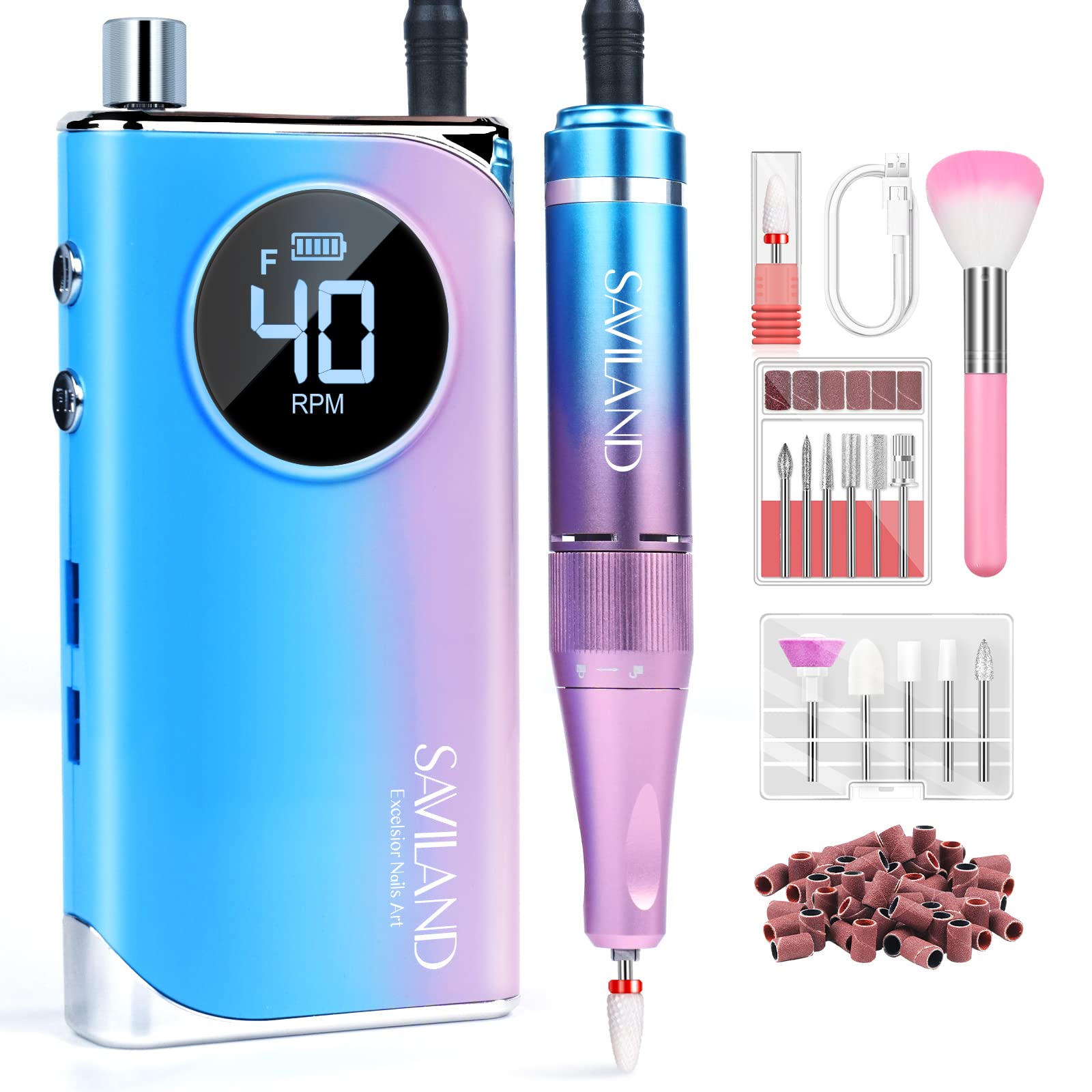 SAVILAND Rechargeable 40000RPM Nail Drill - Portable Electric Nail File with 12 Drill Bits for Nails Electric Nail Drills for Acrylic/Gel Nails Professional Nail Tools for Manicure Pedicure