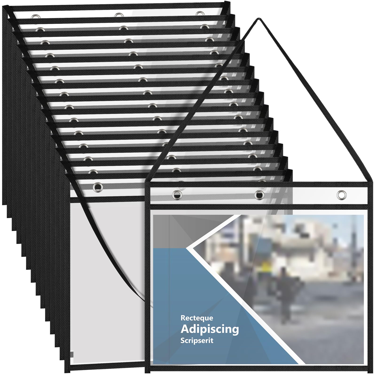 Saypacck 15 Pcs 9 x 12 Inch Horizontal Shop Ticket Holders with Hanging Strap Job Ticket Holders Dry Erase Pocket Sleeves Heavy Duty Sheet Protectors with Black Edge Trim Work Pocket for Document