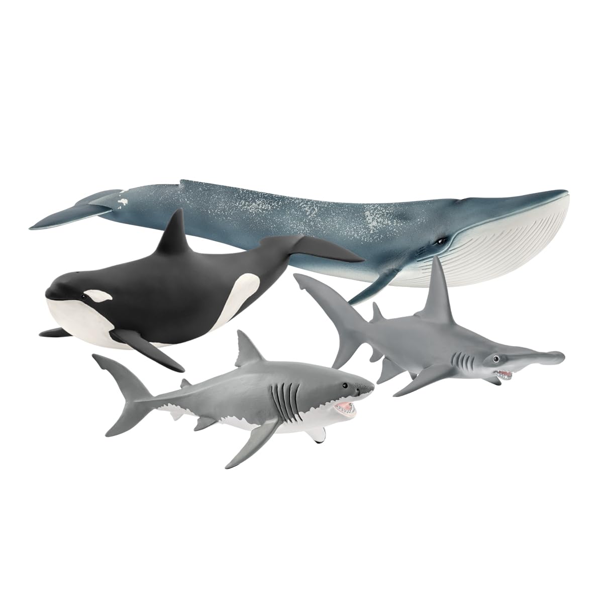 Schleich Ocean Animals Toy 4-Piece Sea Animals Toys Set Including Blue Whale, Killer Whale and 2 Shark Toys for Toddlers and Kids Ages 3+