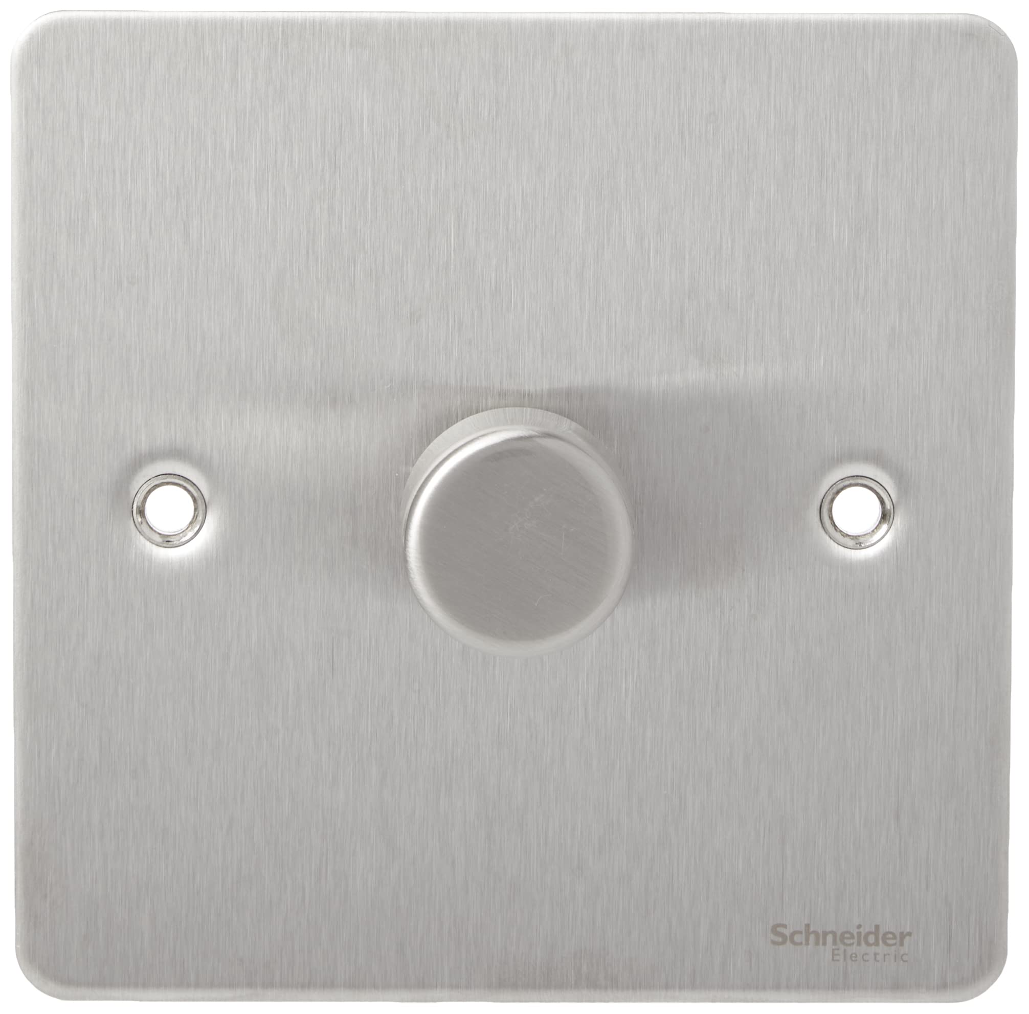 Schneider Electric Ultimate Flat Plate - Single 2 Way Dimmer Light Switch, Main & Low Voltage, 400W/VA, GU6212CSS, Stainless Steel