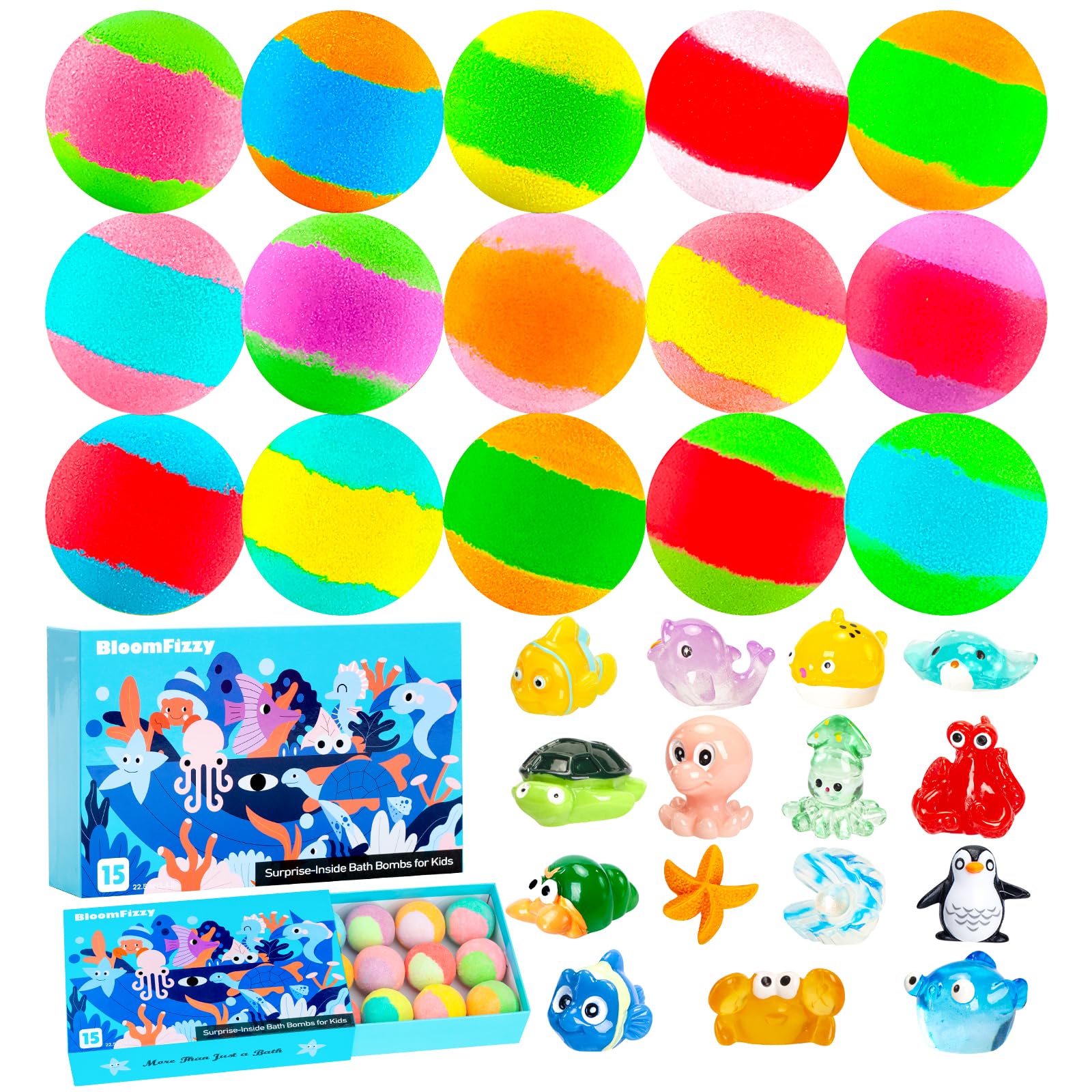 Sea Surprise Bath Bombs for Kids, 15 Pack Organic Fizzy Bath Bombs Gift Set with Hidden Ocean Toys, Gentle & Scented, Kid-Safe & Fun Bath Time, Ideal Christmas Gift & Stocking Stuffer for Kids