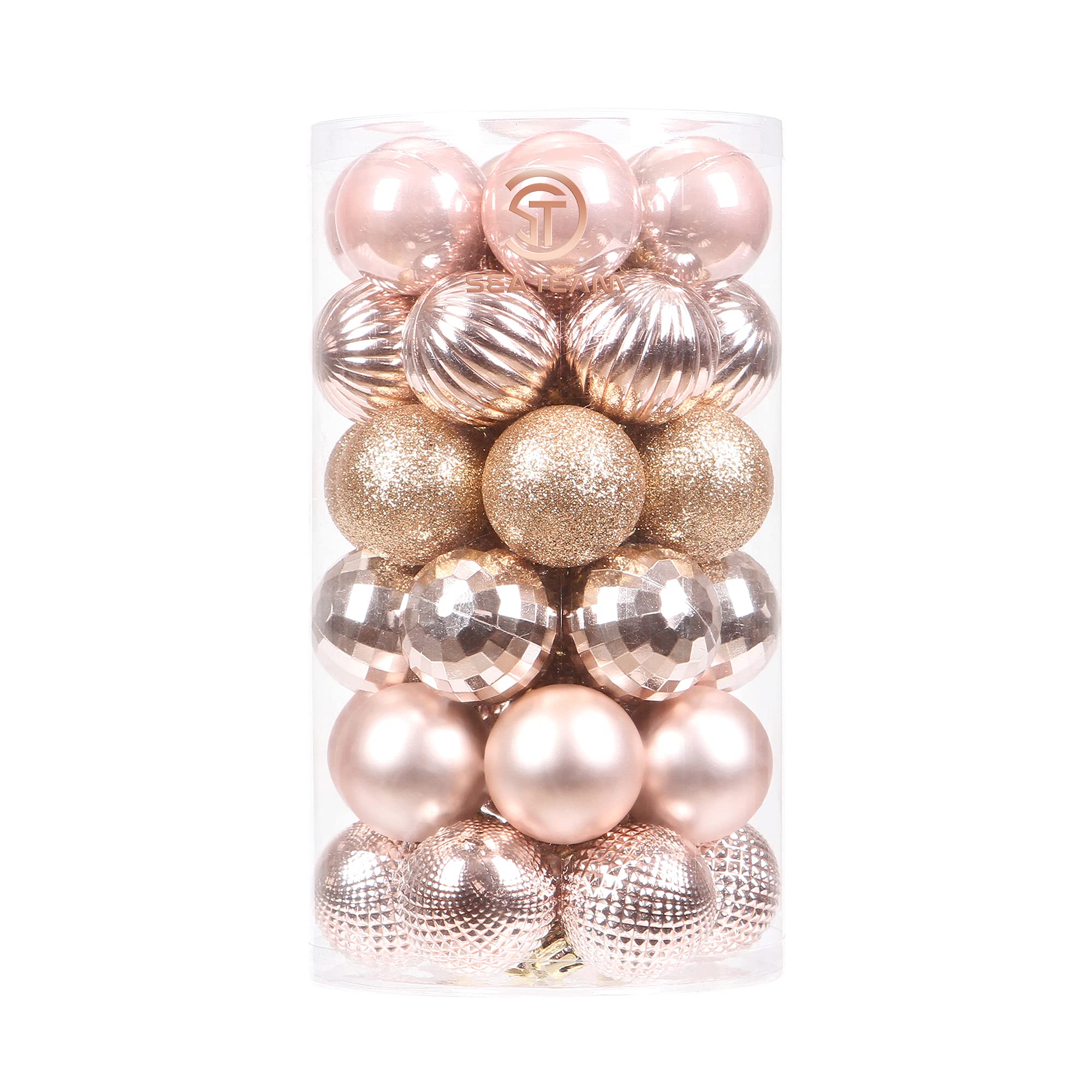 Sea Team 41-Pack Christmas Ball Ornaments with Strings, 40mm/1.57" Small Size Baubles, Shatterproof Plastic Bulbs, Hanging Decorations for Xmas Tree, Holiday, Wedding, Party, Rose Gold