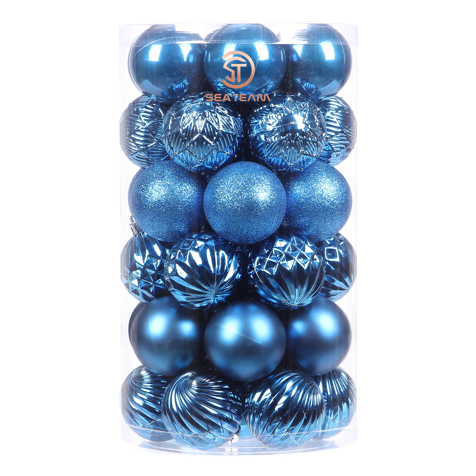 Sea Team 41-Pack Christmas Ball Ornaments with Strings, 60mm/2.36" Medium Size Baubles, Shatterproof Plastic Christmas Bulbs, Hanging Decorations for Xmas Tree, Holiday, Wedding, Party, Princess Blue