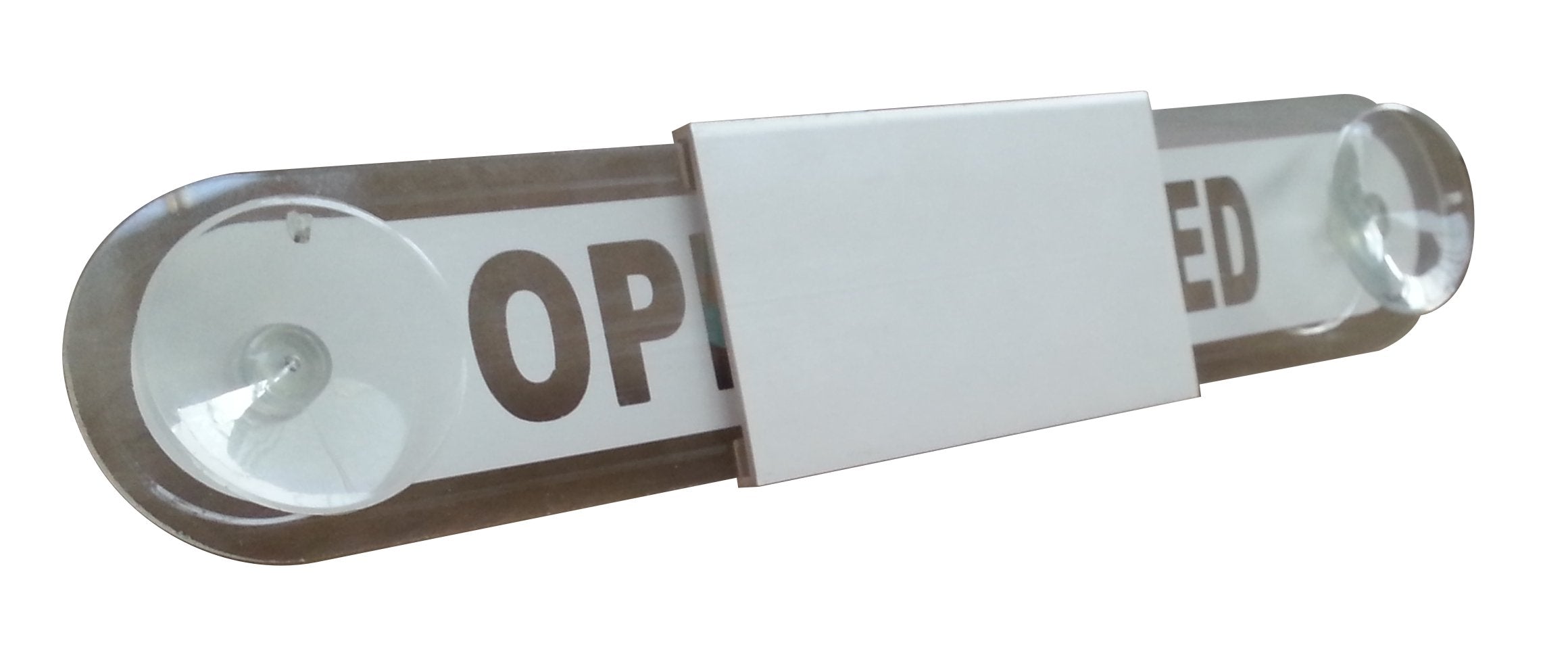 Open or closed sliding window with suction cups to adhere to the inside of a glass window or door. Made from acrylic.