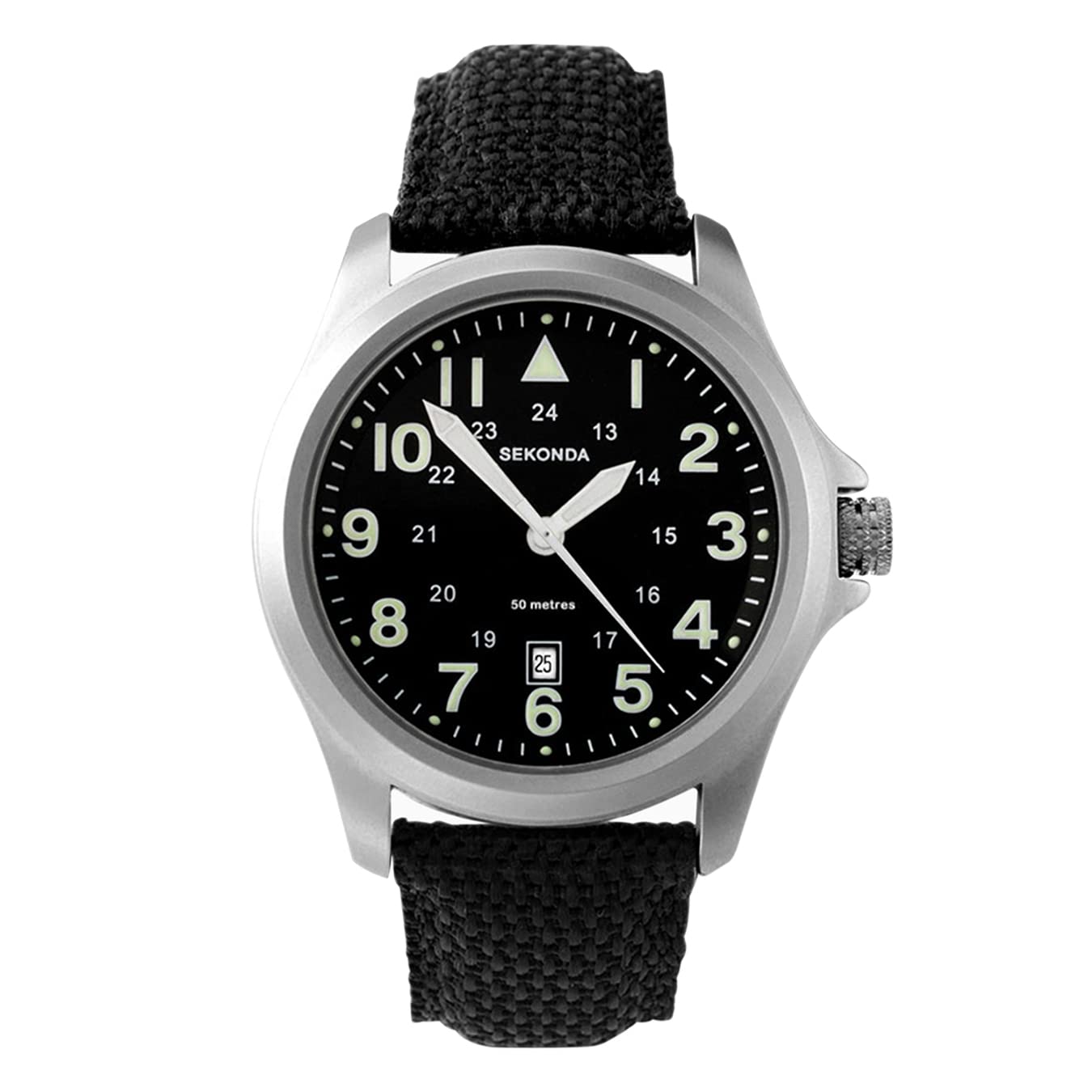 Sekonda Men's Quartz Watch with Black Dial Analogue Display and Black Nylon Strap 3347.27