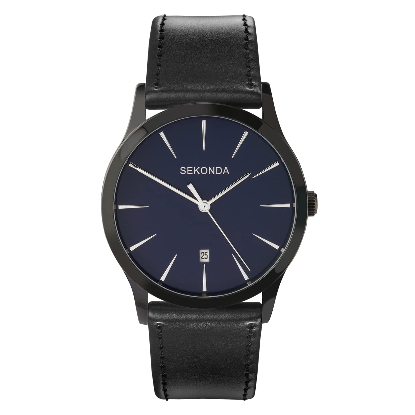 SEKONDA Men's Quartz Watch with Blue Dial Analogue Display and Black PU Strap 3536