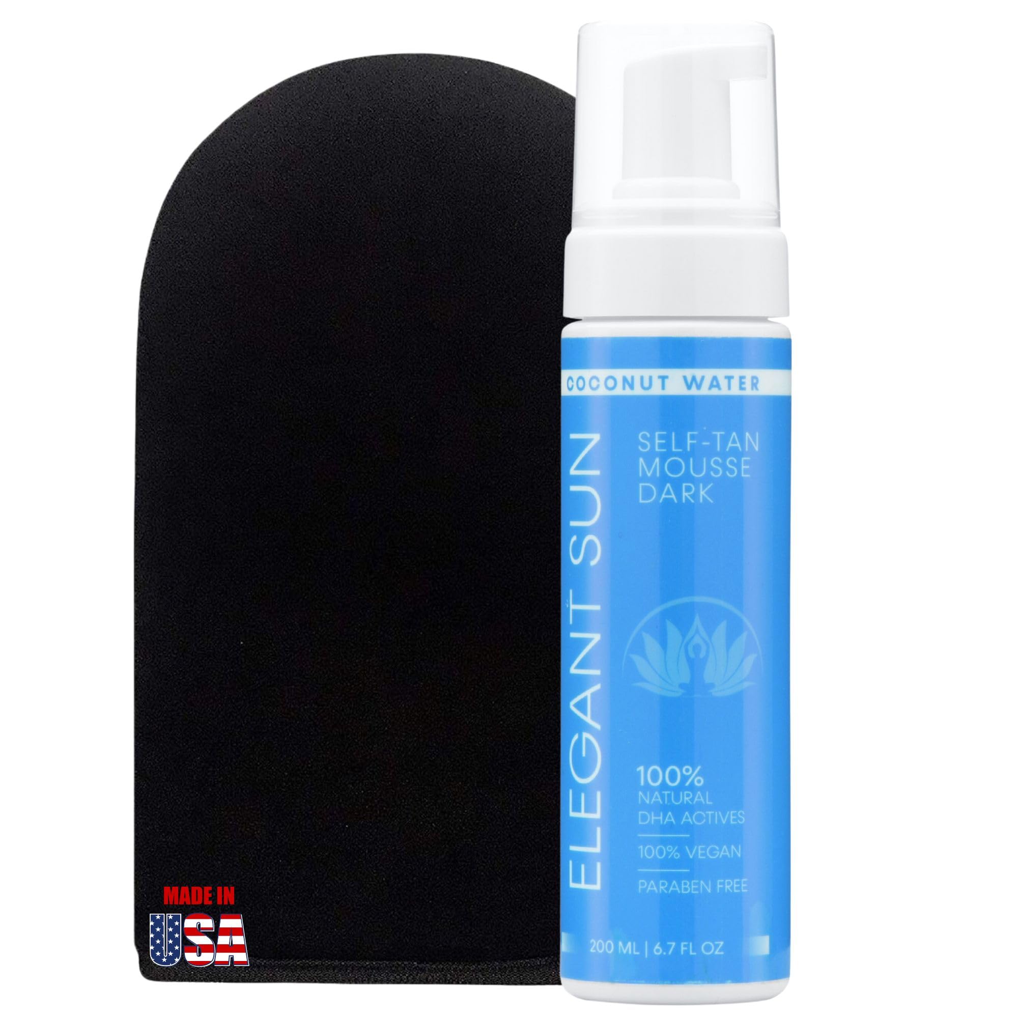 Self Tanner Mousse with Self Tanning Mitt, Coconut Water Tanning Mousse, Fake Tan Sunless Foam, Flawless Sunless Tanner without the Odor, Vegan, Paraben Free, by Elegant Sun