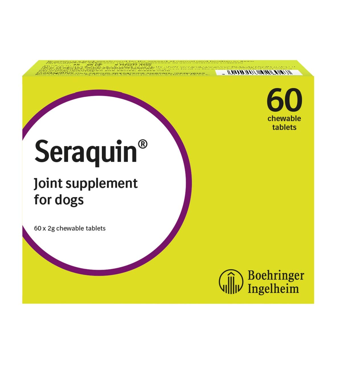 Product DescriptionSeraquin is a nutritional supplement that supports normal joint function in dogs and cats, and is one of the leading joint supplements in the UK. • Supports healthy joint function• Promotes mobility• Aids stiff joints Seraquin contains glucosamine, chondroitin and curcumin, which all support the natural functioning of your dog’s or cat’s joints. • Glucosamine and chondroitin are natural substances found in your pet’s body and provide the building blocks required to form components of the joint - such as cartilage. • Curcumin, an extract of turmeric, is a potent natural antioxidant that helps mop up free radicals in the joint which contribute to degeneration of the cartilage. Seraquin is a tasty tablet your pet will love and it can be given as a treat alongside any prescription medicines prescribed by your vet. Available in packs of 60 chewable tablets.IngredientsGlucosamine and ChondroitinDirectionsPlease follow the recommended feeding guidelines displayed on packagingSafety WarningOnly for use in dogs over 10Kg in weightBox Contains6 x 10 Joint Support Tablets