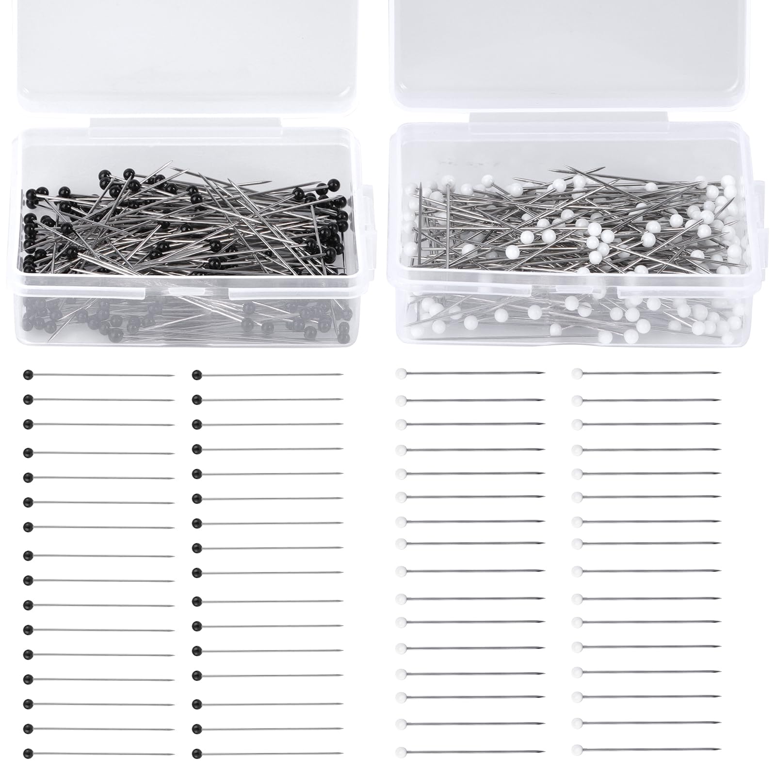 Name: straight head pins, color: black and white, material: steel metal and plastic pearl. Overall length: 38mm, Quantity: 400 pieces. Our craft positioning pins are packaged in a plastic box, which is well protected from loss. These pearlized ball head pins are suitable for wedding bouquets, corsages, crafts, costume making, corsages.