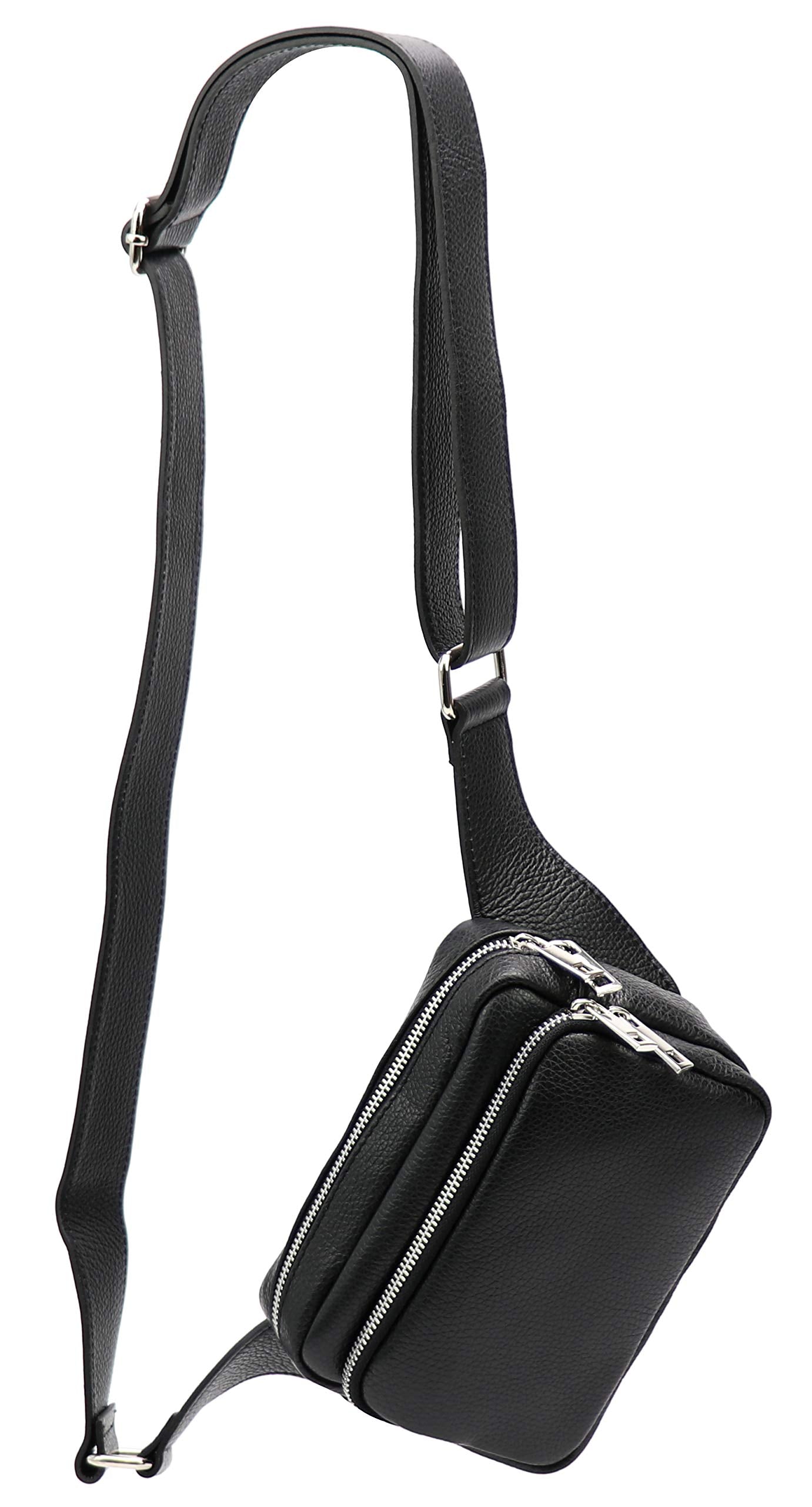 SH Leder Jisoo G412 Genuine Leather Waist Bag for Festival Travel Bum Bag Medium Crossbody Bag Women Leather Bag 18 x 13 cm, black, M