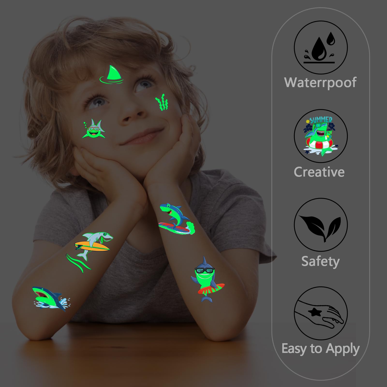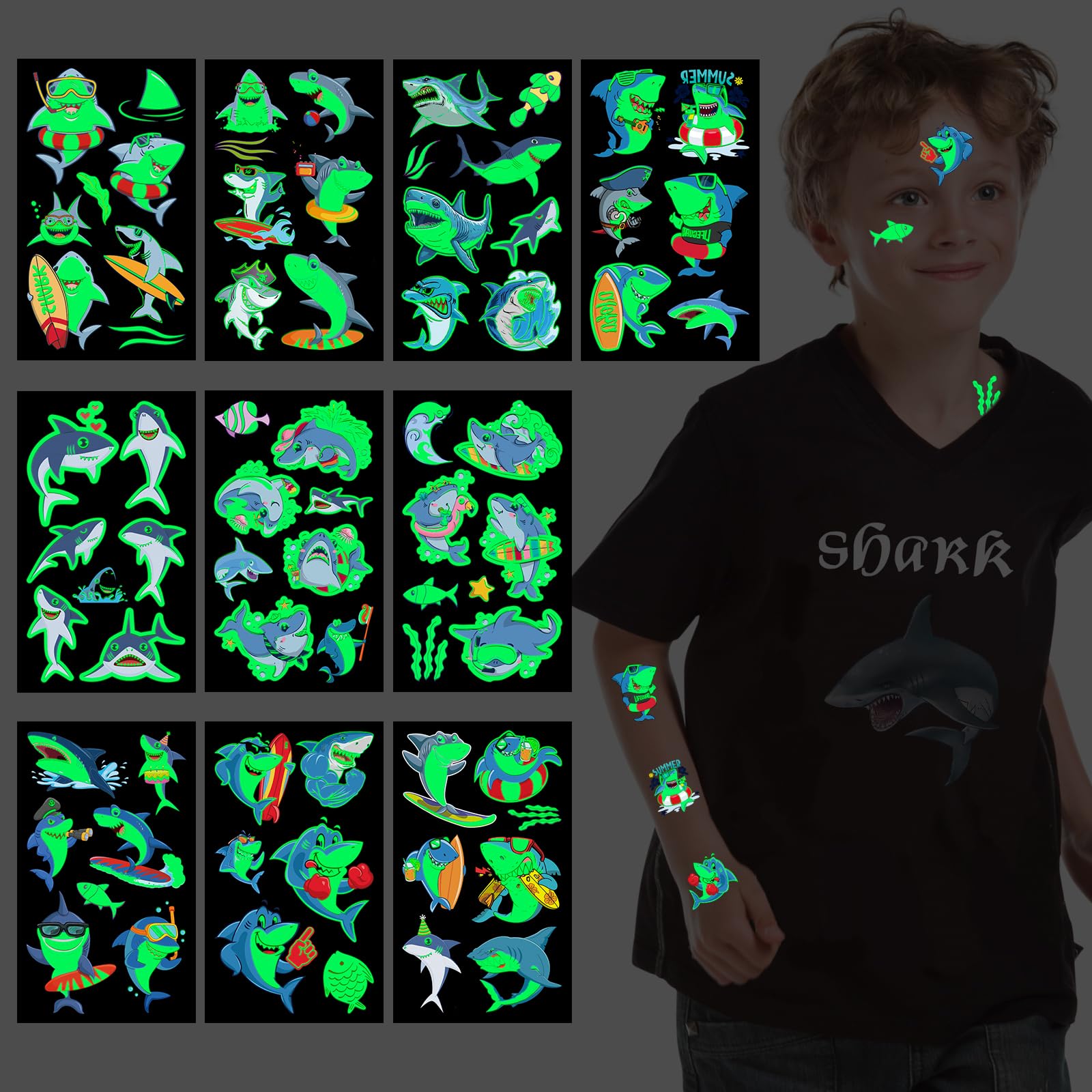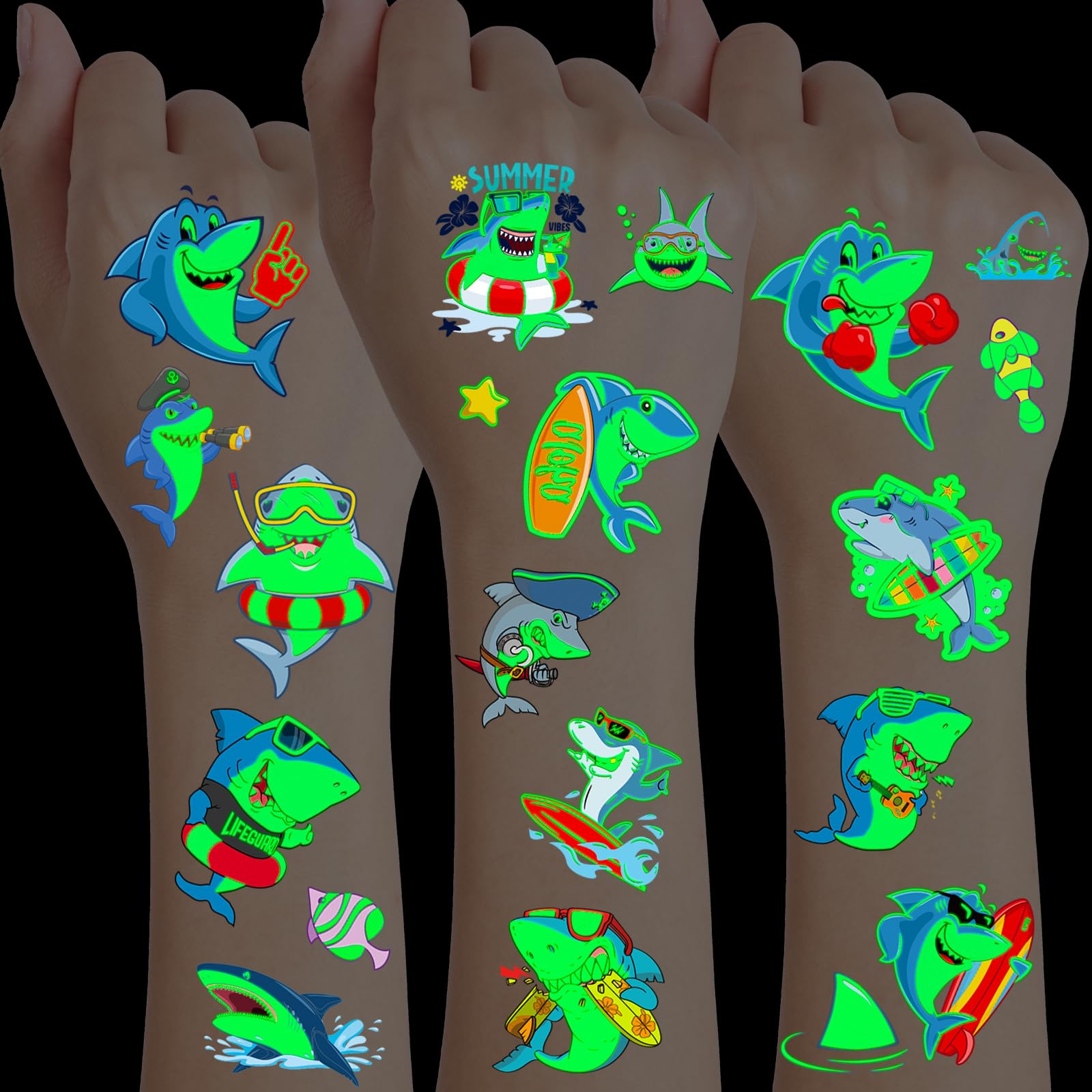 Glow shark temporary tattoos for kids: 10 sheets, each sheet measured approx. 5.7*9.6cm.