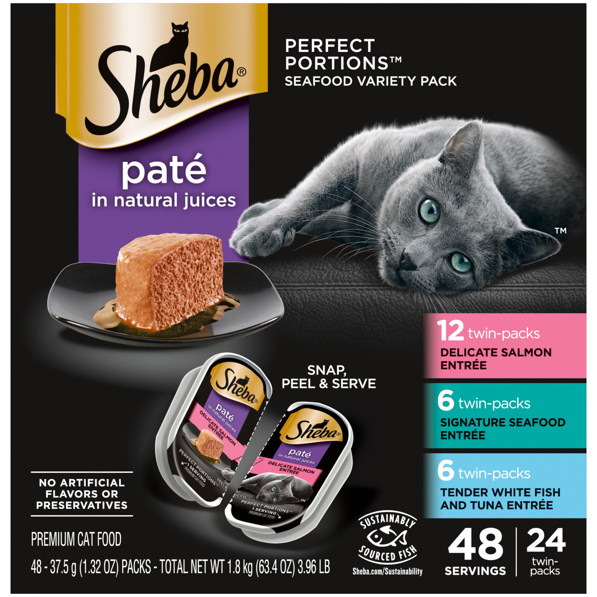 SHEBA PERFECT PORTIONS Paté Adult Wet Cat Food Trays (24 Count, 48 Servings), Signature Seafood Entrée, Easy Peel Twin-Pack Trays
