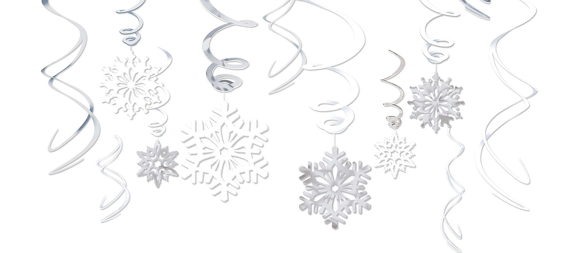 Features snowflake designs in the colors of gold and silver printed on the edges