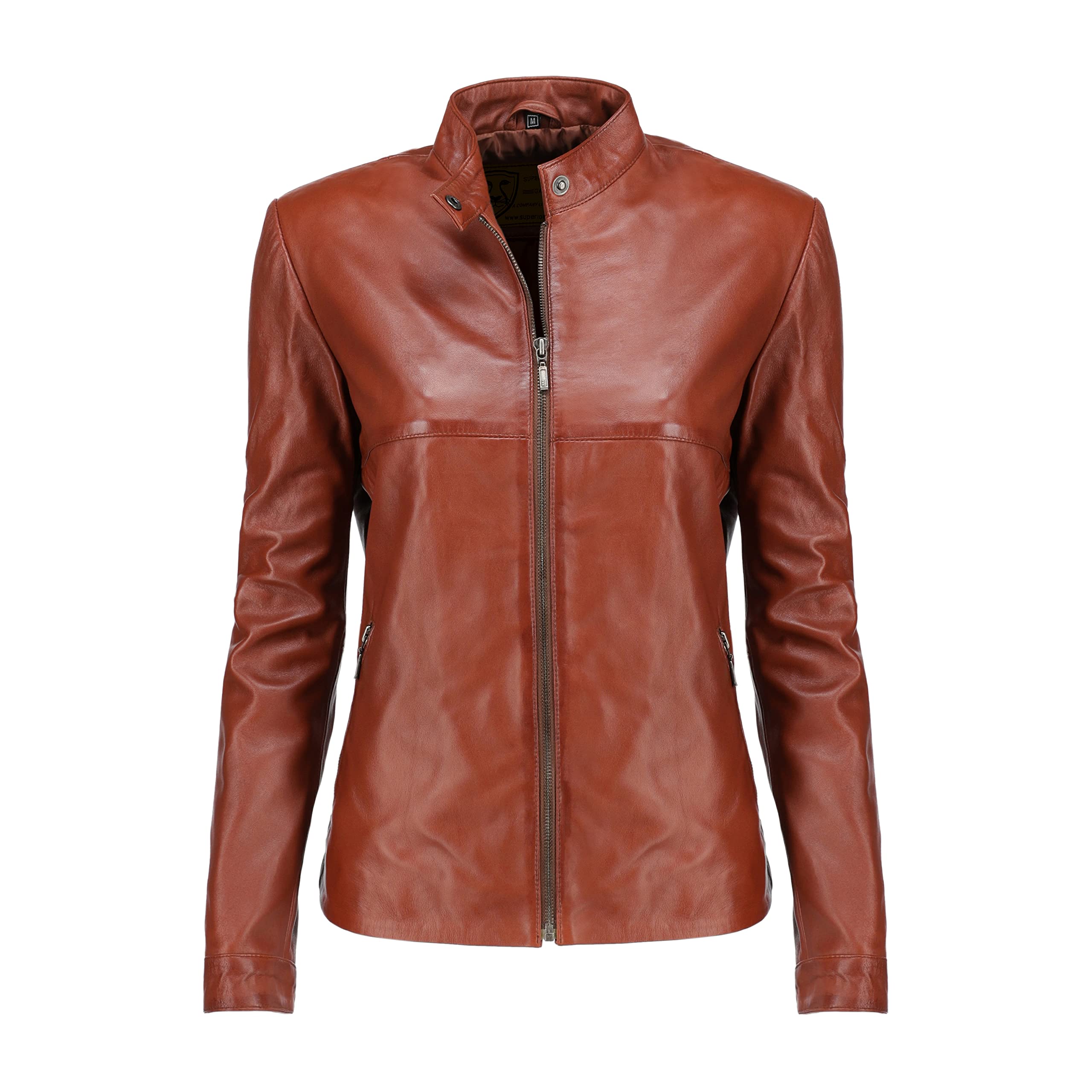 Lamb skin soft leather full grain black and Tan color jacket with two outside zip pocket with adjustable waist strap.