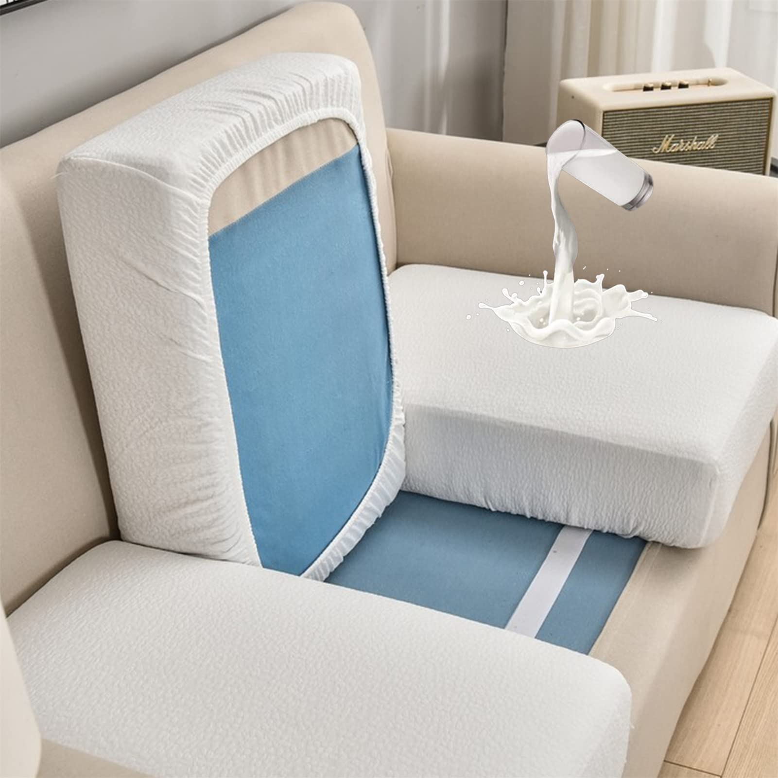SHUOJIA Sofa Seat Cushion Covers, Waterproof Sofa Seat Cushion Covers Replacement, Stretch Sofa Cushion Protector for Individual Cushions,Seat Couch Cover for Pets & Kids (White,4-Seater)