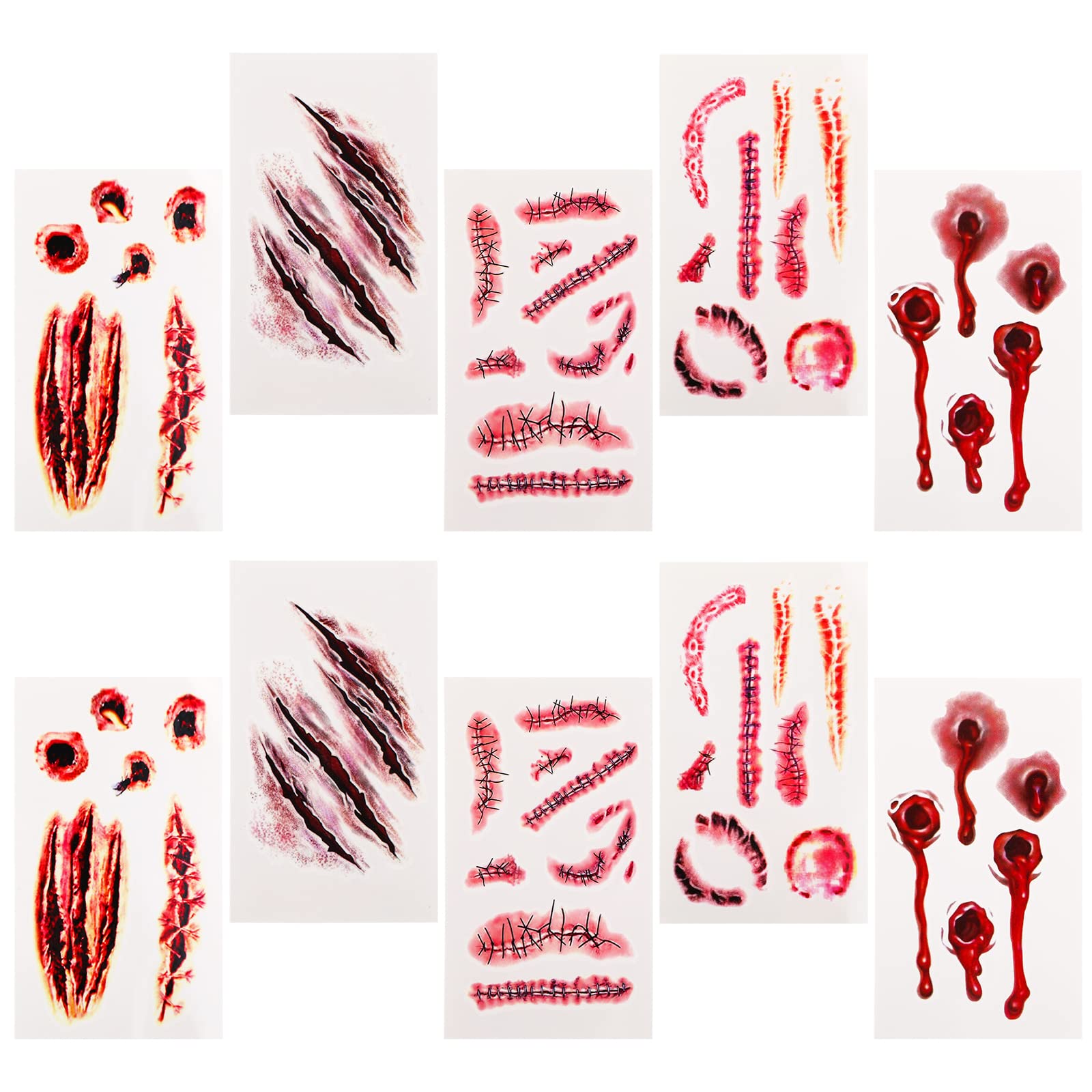 Sibba Fake Blood Temporary Tattoo Body Art Skin Stickers 10 Pieces Horror Realistic Bloody Wound Scar Scab Bruise Easter Halloween Cosplay Party Makeup Kit