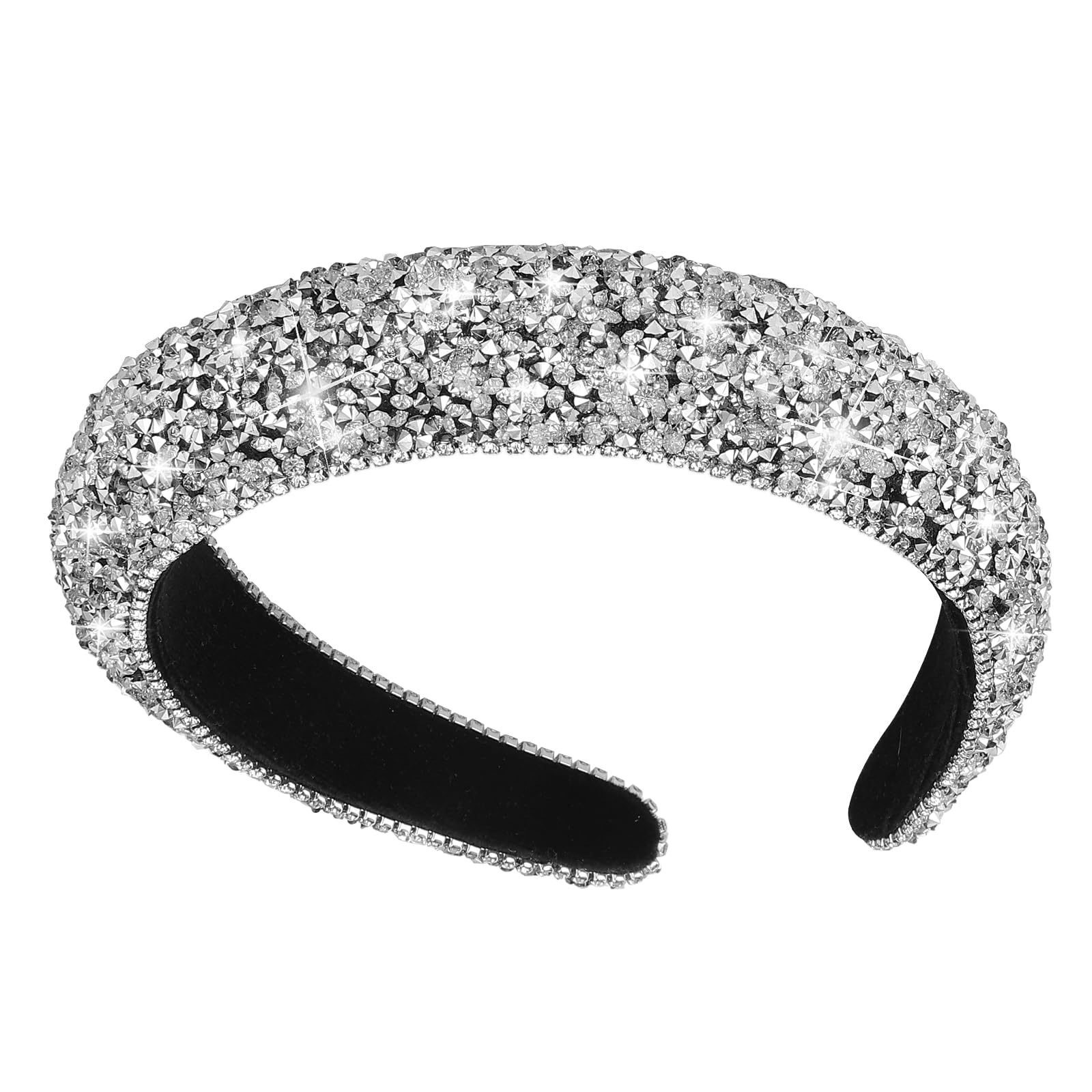 Sibba Rhinestone Headband Padded Hairbands Hair Hoops Accessories Crystal Beaded Jeweled Sparkle Wide Band Handmade Sequin Embellished Headpiece Headwear Easter Party for Women