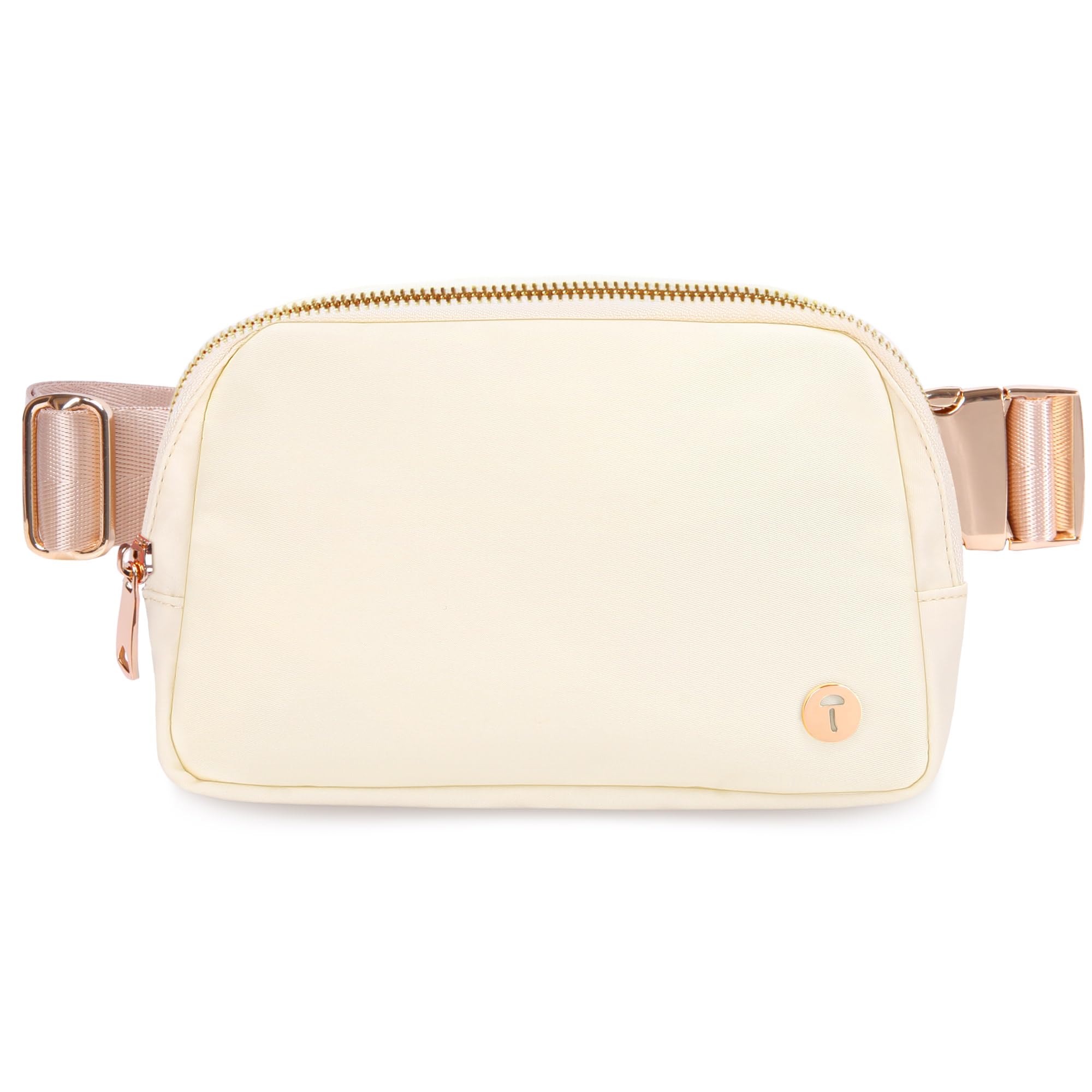 Sienien Belt Bag For Women Fanny Pack Crossbody Bag Fashionable Waist Packs Adjustable Strap Waterproof Ivory Nylon Gold