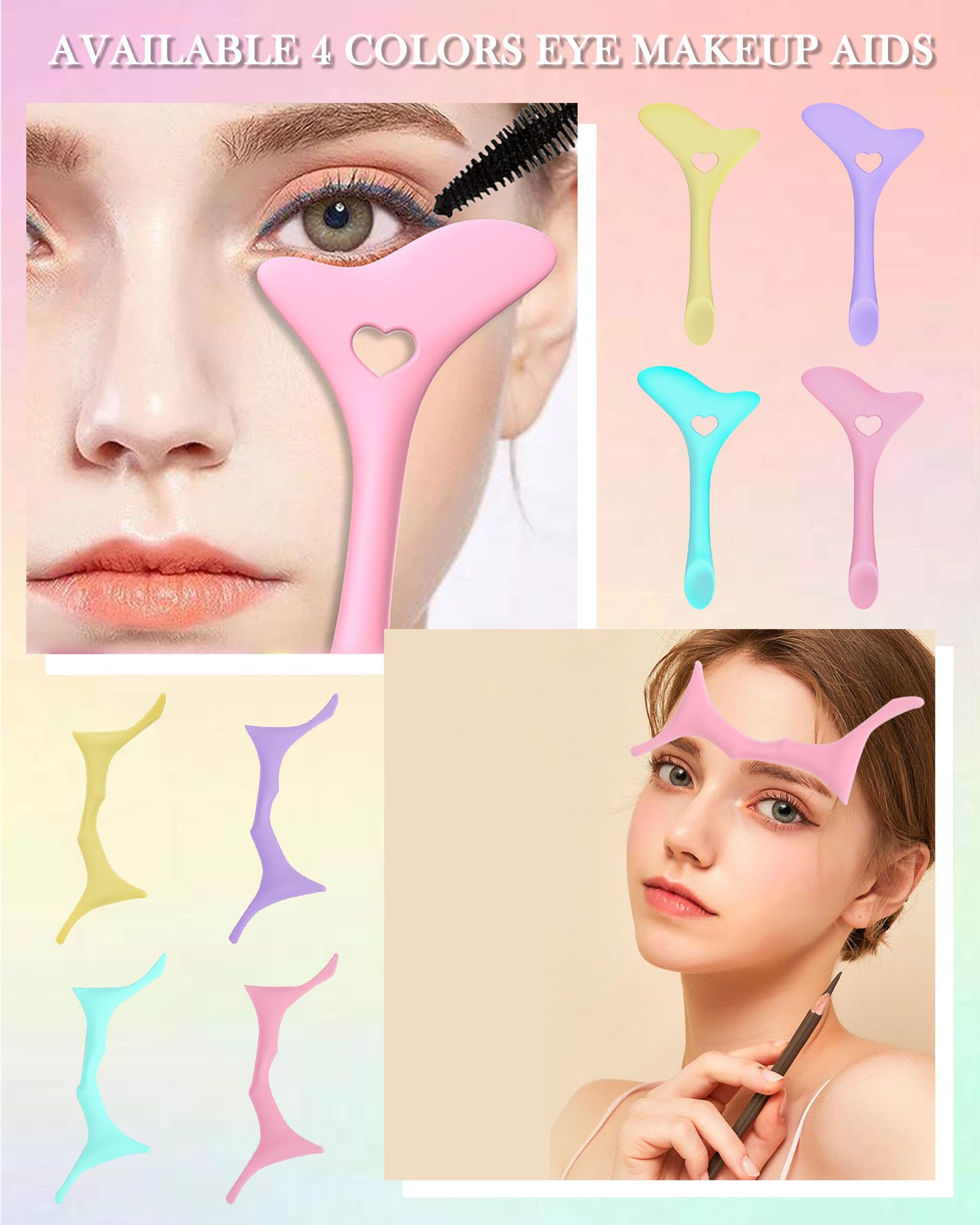 2Pcs Eyeliner & Eyebrow Stencils Silicone Tool- 5 in 1 Winged Tip Eyeliner and Eyebrow Stencil Aid, Reusable Multifunctional Eye Makeup Tool Kit, for Women Winged Eyeliner, Defined Brow, Lip Line, 4 colors include Blue/Pink/Yellow/Purple